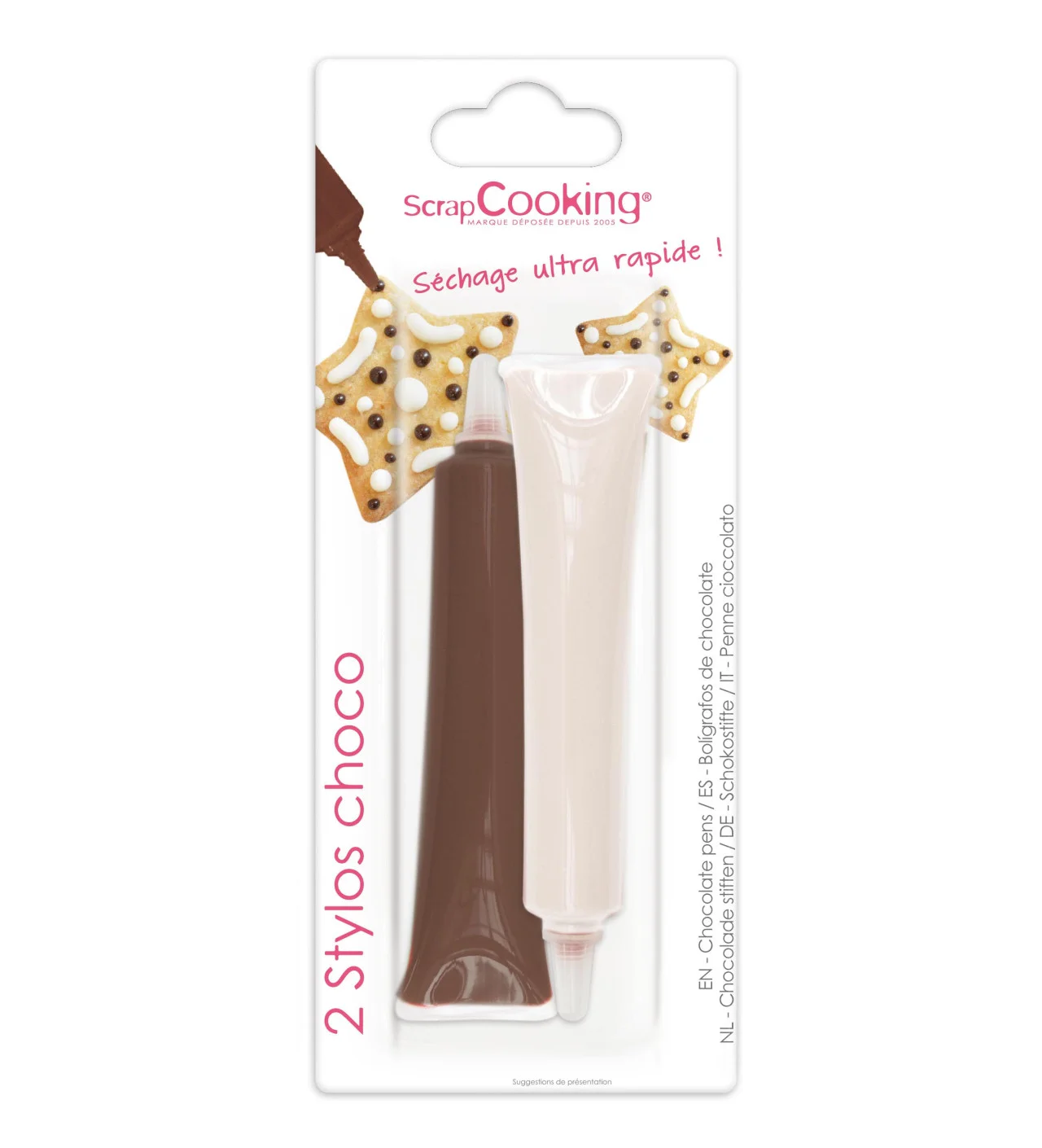 2 Stylos Chocolat Blanc et Chocolat au Lait 25g Scrapcooking