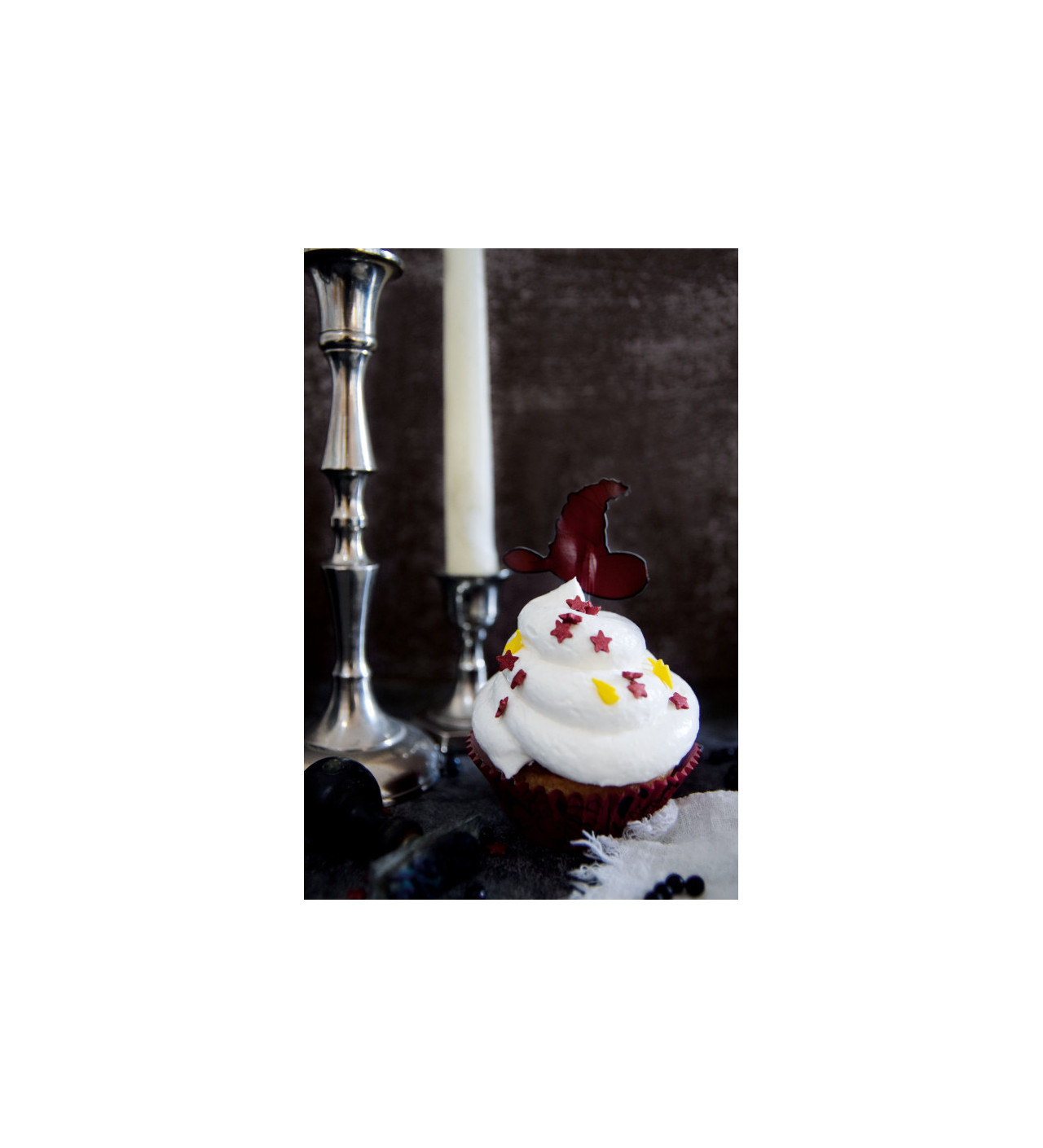 Les caissettes cupcakes ont un diamètre de 5,2 cm à la base avec un sommet de 7,5 cm, et une hauteur de 3,4 cm, offrant une base solide pour vos délices sucrés. Retrouvez également des cake toppers assortis représentant les accessoires indispensables pour tout sorcier de ce nom, le chapeau et le chaudron magique ! Les dimensions du chaudron sont de 3,9 x 4,3 cm, tandis que le chapeau de sorcier mesure 5 x 4,1 cm.