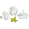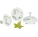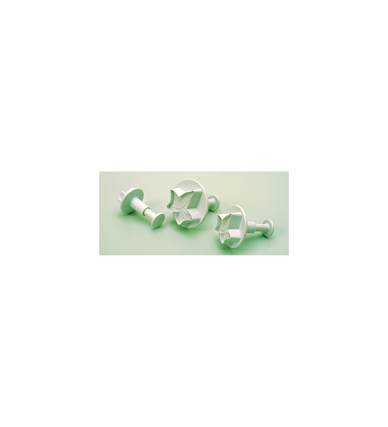 Jeu de 3 Emporte pièces à Poussoir. Le poussoir permet l'extraction facile de la pâte découpée. Ces découpoirs permettent également de marquer sur la pâte les nervures des feuilles.