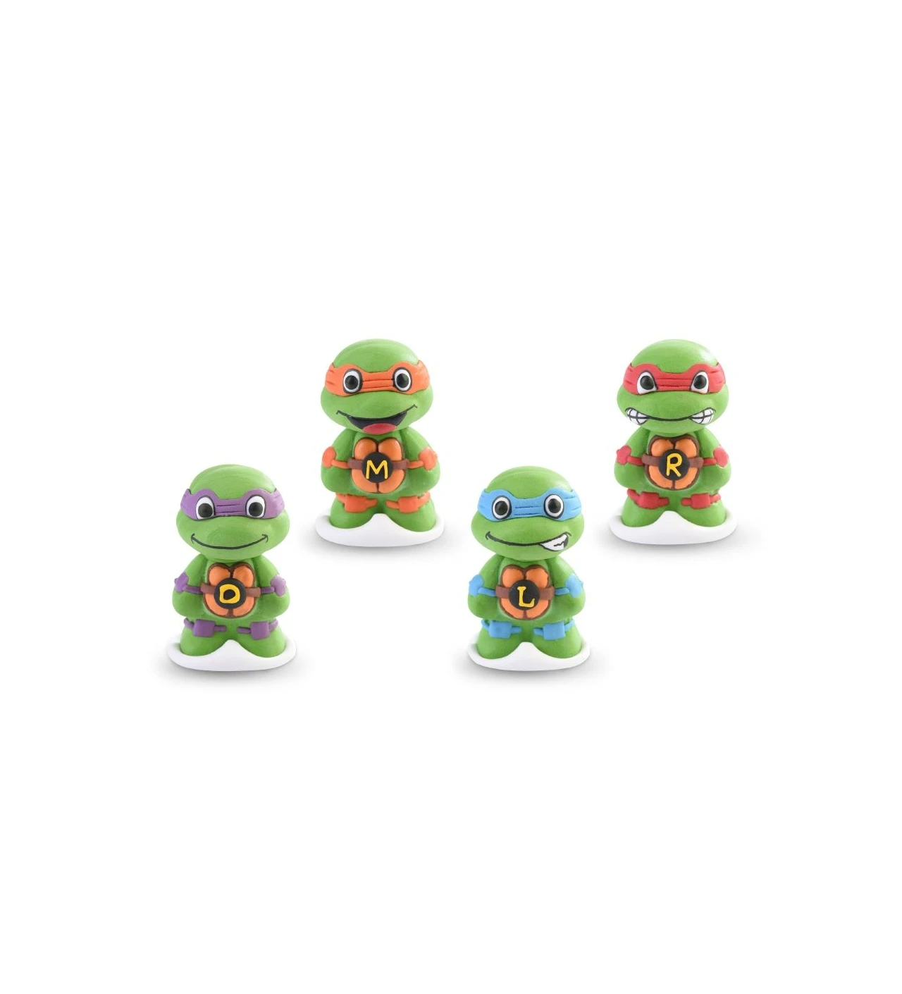 Avec leurs dimensions de 3,5 x H 6 cm, les Tortues Ninja se glissent parfaitement sur vos gâteaux, cupcakes ou autres douceurs pour un effet spectaculaire.