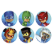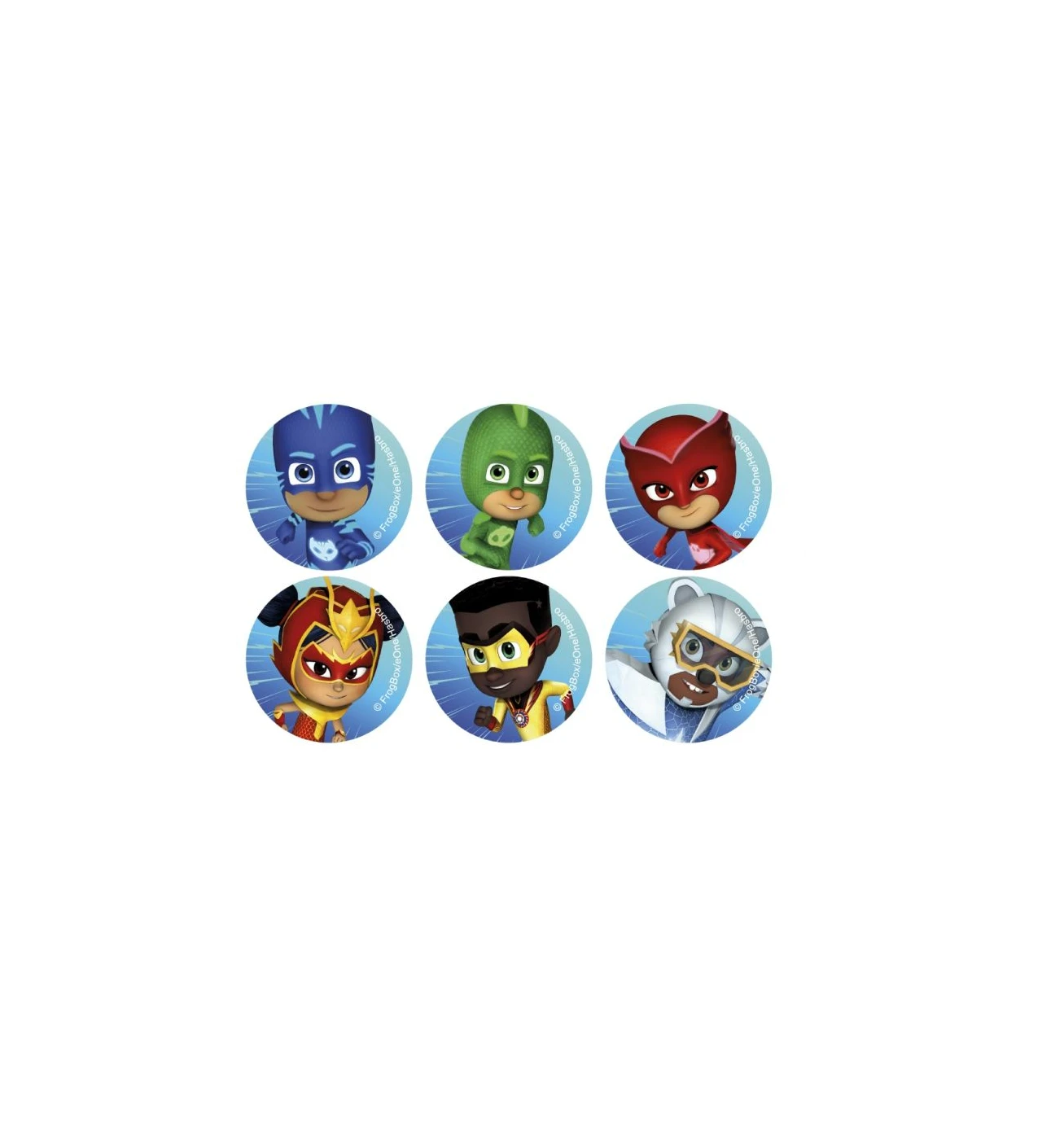 Ces disques individuels, mesurant 5,8 cm de diamètre, se déclinent en 6 designs différents, chacun représentant un personnage emblématique de l’univers Pyjamasques : Yoyo, Gluglu, Bibou, Pyja Rouge, Pyja Soleil et Pyja Ours.