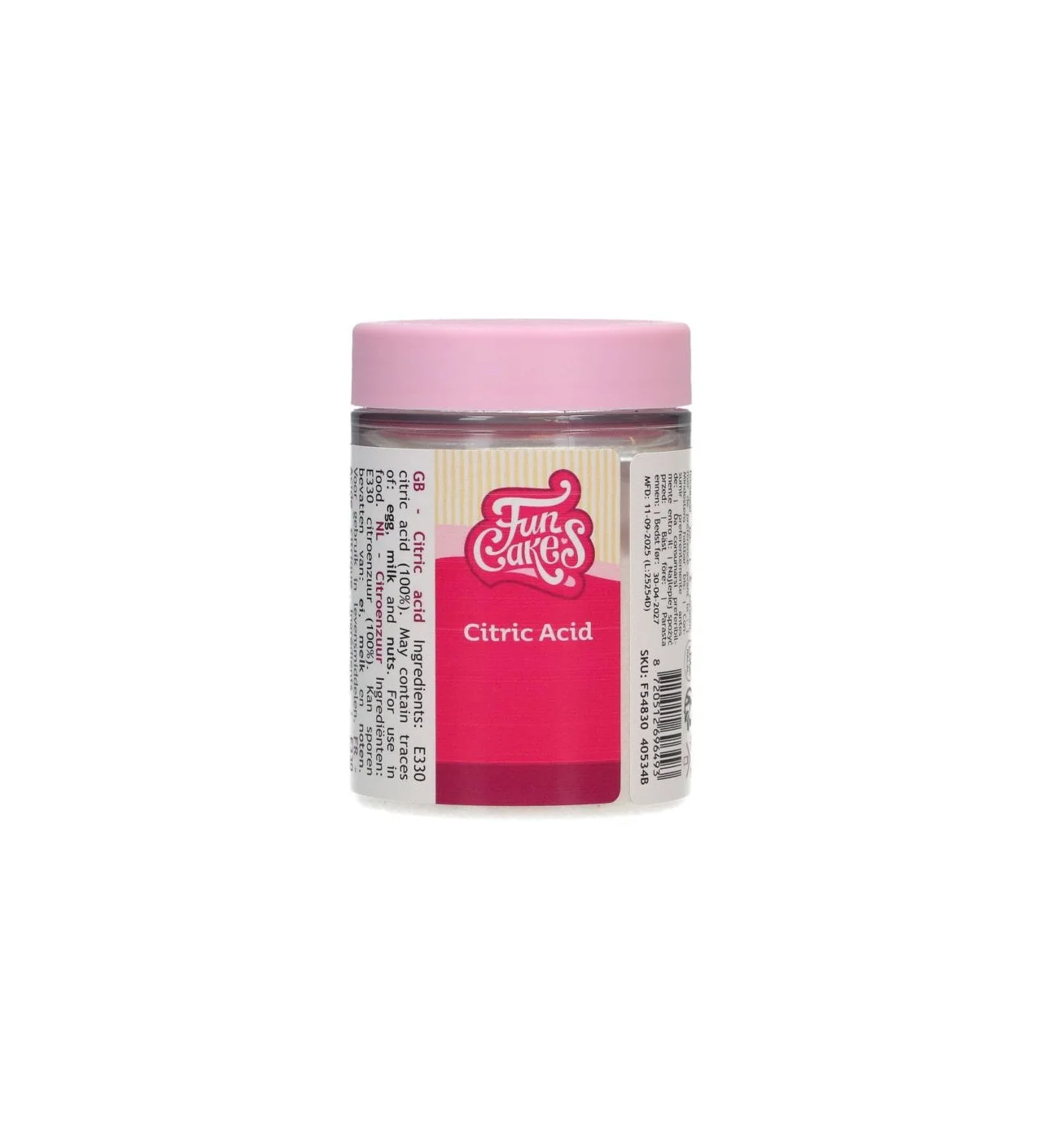 L'acide citrique FunCakes se présente sous forme de poudre blanche inodore. L'acide citrique en poudre est utilisé dans l'industrie alimentaire (E330) comme conservateur naturel, mais aussi pour donner de l'acidité aux boissons rafraîchissantes par exemple.