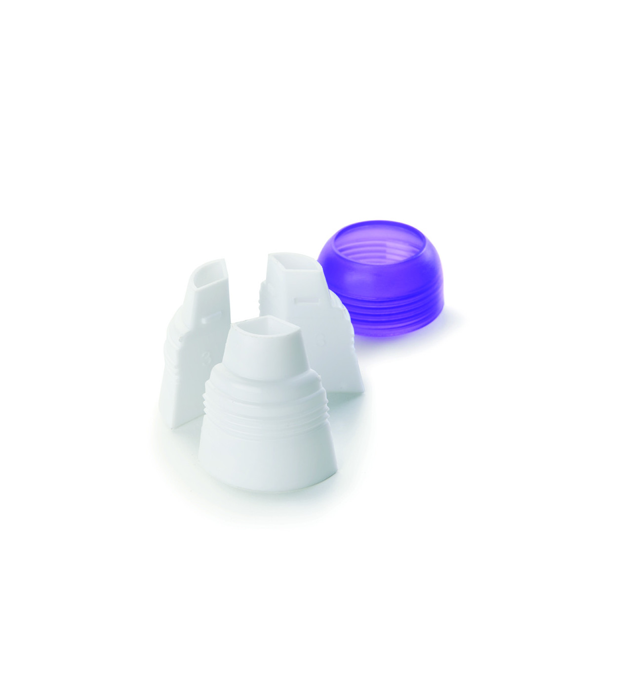 De plus, cet Adaptateur 3 couleurs est fourni avec 3 douilles qui vous permettront d'utiliser, en même temps, jusqu'à 3 poches de glaçages. Cela vous permettra la création de fleurs tricolores. Dans chacune de vos trois poches à douille, placez un des adaptateurs plastique Ibili puis réunissez vos 3 poches. Placez ensuite votre douille puis vissez l'embout de l'adaptateur pour pouvoir réalisez un glaçage tricolore.