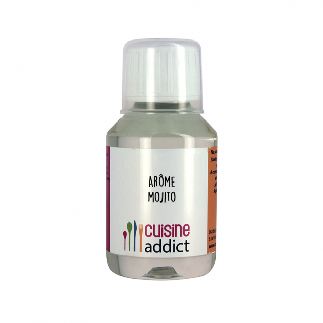 Facile à doser, le flacon de 115 ml d'Arôme Mojito est équipé d'un système compte-gouttes, en plus d'être fourni avec un petit gobelet gradué. Pour 1 L de préparation, comptez entre 1 et 6 ml de cet Arôme Alimentaire Mojito. Si votre préparation nécessite une cuisson, pensez à augmenter le dosage de votre Arôme Cuisineaddict.