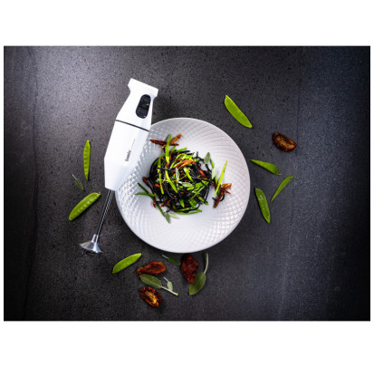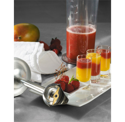 Ainsi, vous pourrez facilement placer un fouet à la place du mixeur pour faire monter une chantilly ou une mayonnaise. Vous pourrez même placer un mini hachoir afin d'émincer vos herbes fines pour en faire une sauce pesto.