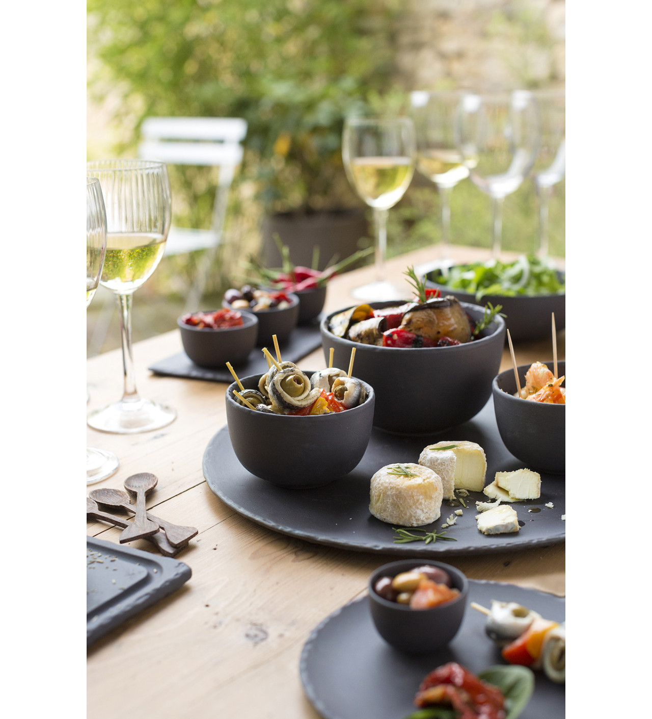 La porcelaine destinée a créer les articles Basalt est teintée en noir dans la pâte de porcelaine pour donner l'illusion parfaite de l'ardoise.