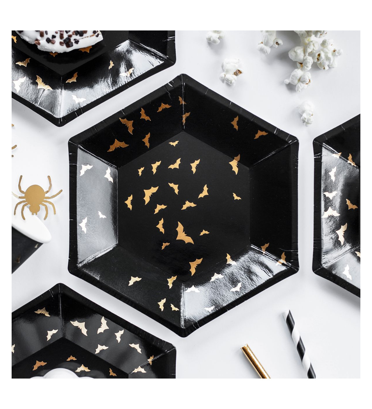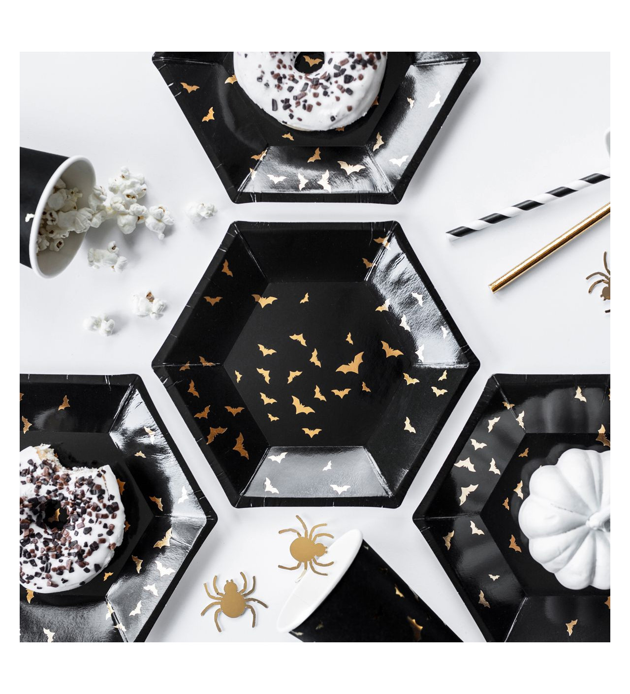 Leur design aussi effrayant qu’élégant raviront petits et grands ! L’association de couleurs entre les chauves-souris aux détails dorés et le fond noir obscur et profond est parfaite pour apporter un côté chic à votre soirée ! Retrouvez 6 assiettes en carton de 20 cm de qualité supérieure pour une décoration de table Halloween réussie.
