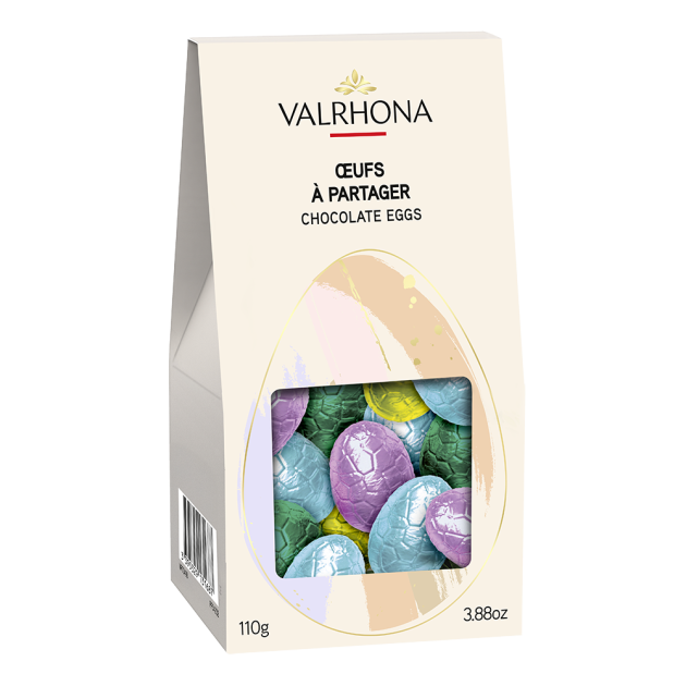 Pratiques à offrir et faciles à partager, ces chocolats Valrhona sont idéals pour garnir un panier de Pâques ou accompagner un moment convivial en famille. Issu de la collection Œufs à partager, ce coffret chocolat de 110 g célèbre Pâques avec élégance, couleur et gourmandise.