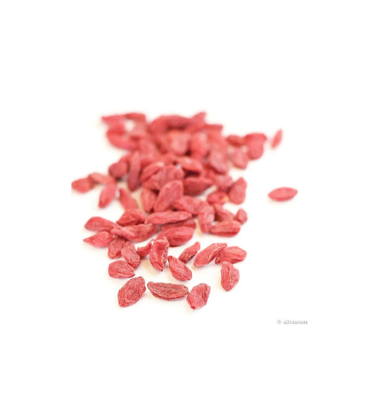 Déjà consommée en Chine il y a plusieurs millénaires, la baie de goji est un petit fruit sec provenant d'un arbuste de la famille des solanacées. Le fruit séché de forme ovale et de couleur rouge se trouvera aisément en plein soleil dans un sol alcalin et sec. Très répandue dans la médecine chinoise traditionnelle, la baie de goji aurait des bienfaits sur le foie et les reins. Ces propriétés sont encore à démontrer via des études poussées mais cela n'empêche pas la baie de goji de posséder une grande richesse nutritionnelle !