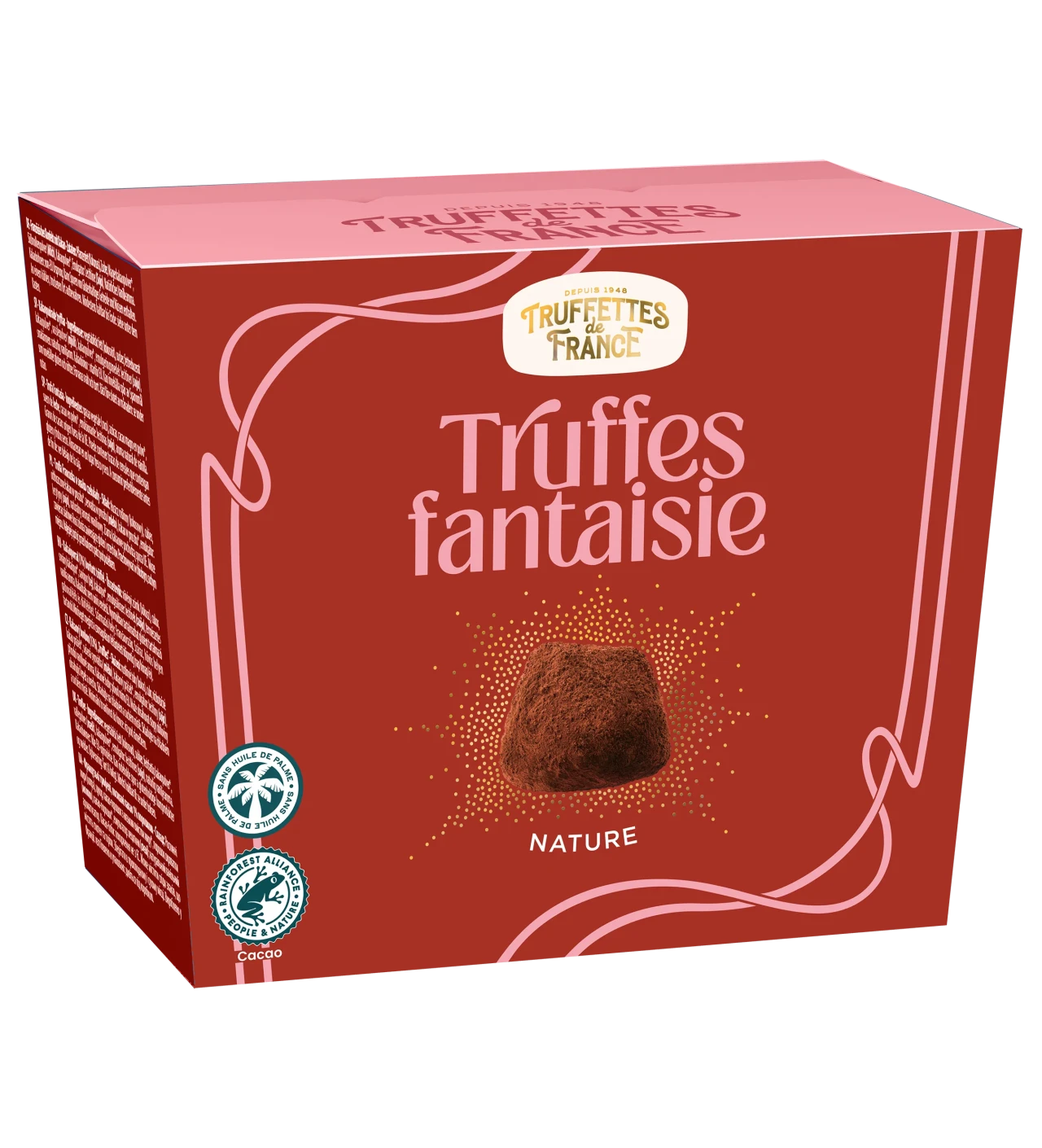 Confiserie incontournable de nos fêtes de fin d’année, laissez-vous tenter par les Ballotins Truffes Fantaisie Nature 200 g Truffettes de France. Ces délicieuses petites boules de chocolat fondant saupoudrées de cacao sont confectionnées selon la tradition et sans une goutte d’huile de palme.