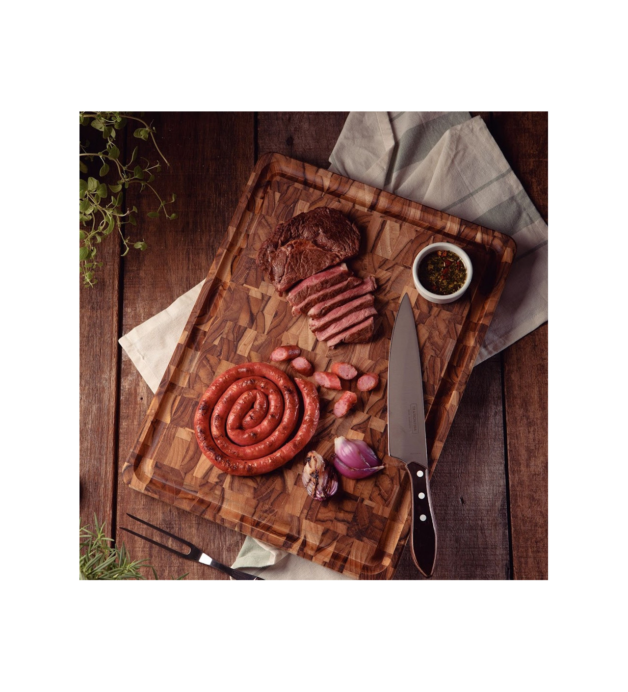 Reconnue pour sa durabilité, cette essence permet à ce billot professionnel de résister aux égratignures et entailles. Toutefois, l’un des plus grands atouts de ce bois réside dans le fait qu’il a été récolté de manière responsable. Tramontina, l’entreprise familiale à l’origine de ce billot, sélectionne exclusivement du bois certifié FSC, garantissant un travail dans le respect de l’environnement.
