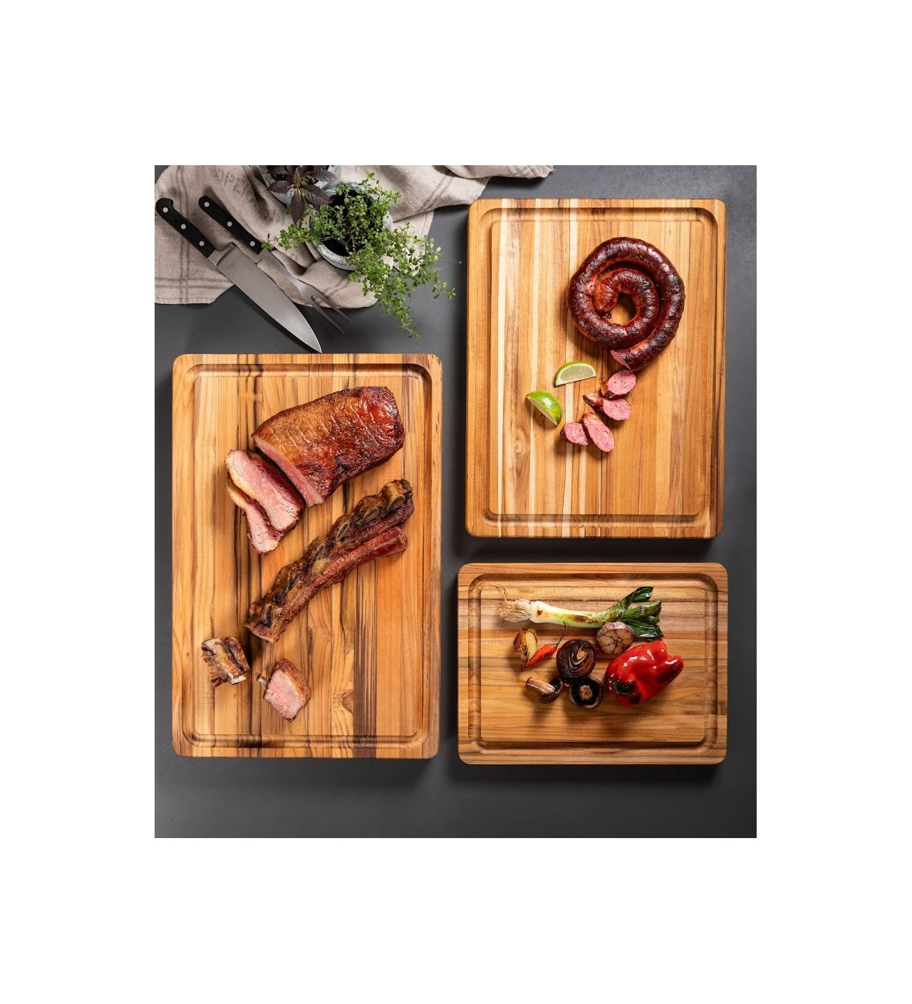 De plus, le teck est reconnu pour sa durabilité exceptionnelle, offrant une surface de coupe plus résistante aux entailles et égratignures. La rigole intégrée permet à l’eau des légumes et au jus de viande de s’écouler facilement lors de leur préparation. Pour un usage quotidien, ce billot en bois de qualité supérieure constitue une solution pratique, traversant les années avec robustesse.