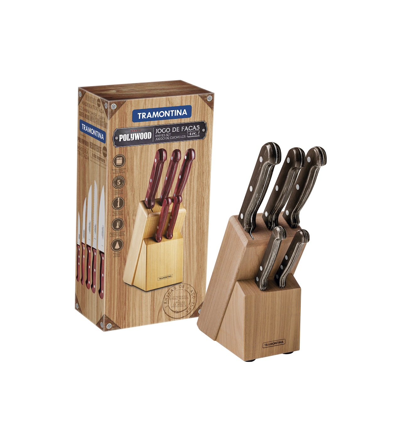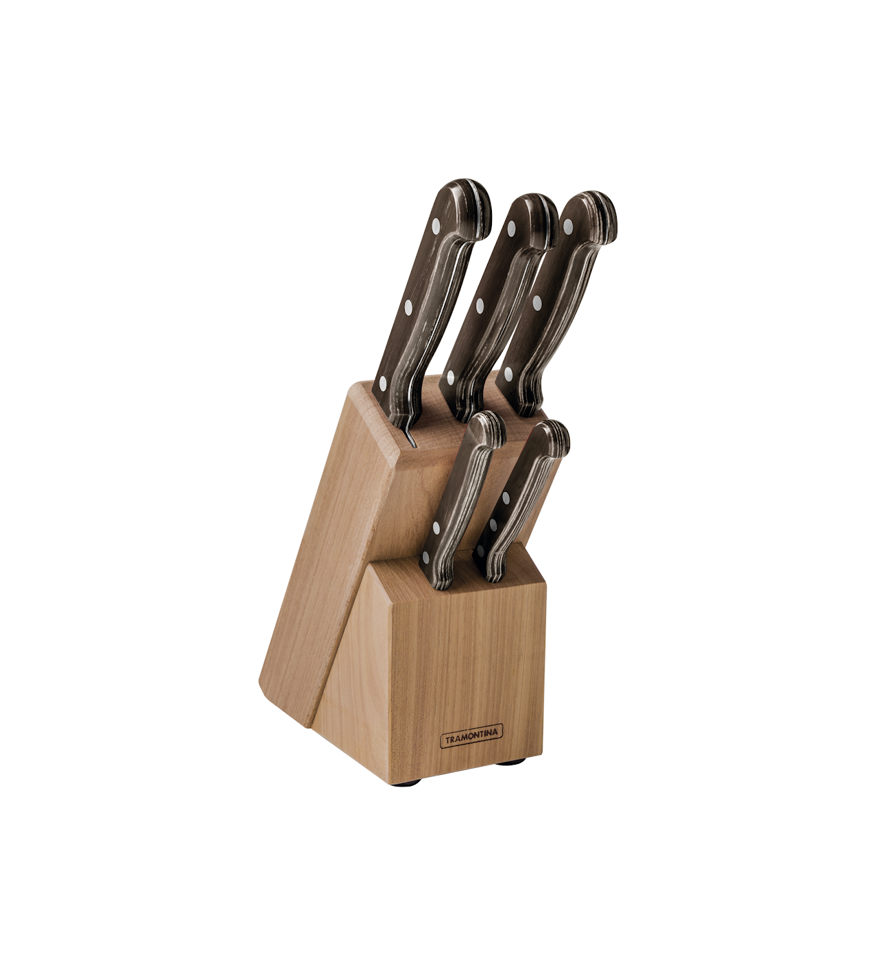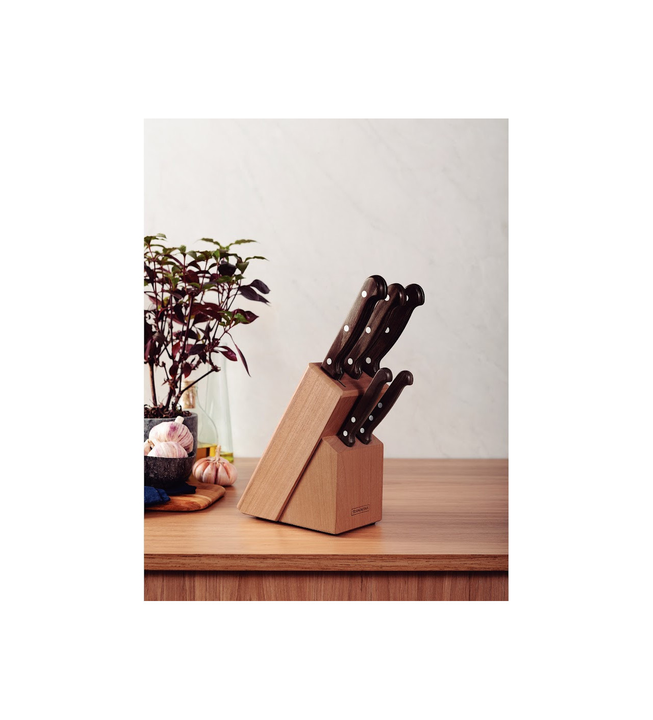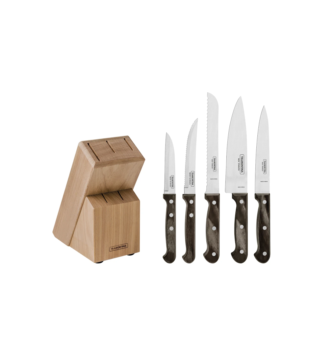 Bloc à Couteaux + 5 Couteaux de Cuisine Inox et Technobois Tramontina