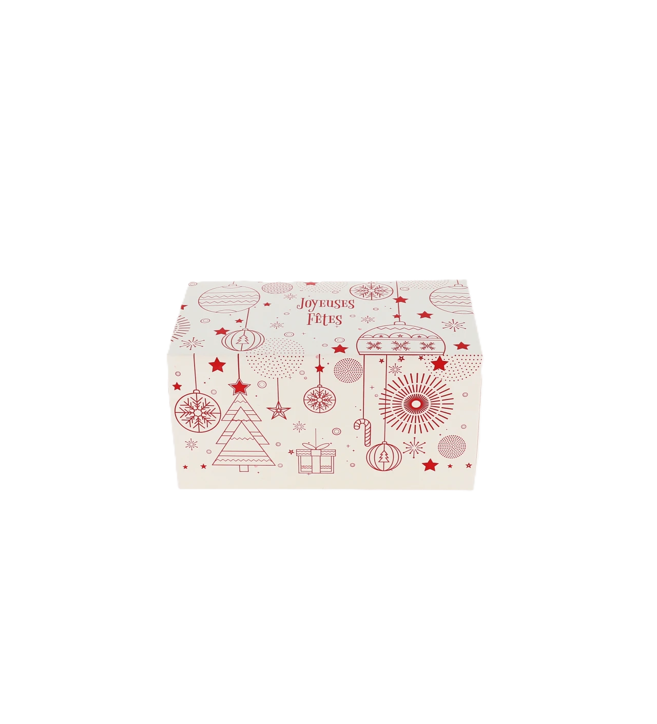 Mallard vous propose la boîte à bûche en carton rouge en fête. Parée de motifs festifs et modernes, cette boîte de transport pour bûche fera l’écrin parfait pour placer vos créations sucrées.