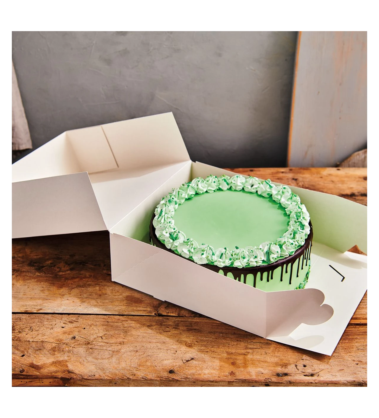 Afin de conserver votre gâteau et le transporter sans mal, la meilleure solution reste la Boîte à Gâteau. De couleur blanc uni et sans fenêtre, elle gardera la surprise intacte ! Mesurant 32 cm de chaque côté, la boîte à gâteau dispose d'une hauteur de 11.5 cm. De ce fait, elle convient parfaitement aux gâteaux décorés puisqu'elle n'abimera pas le décor.