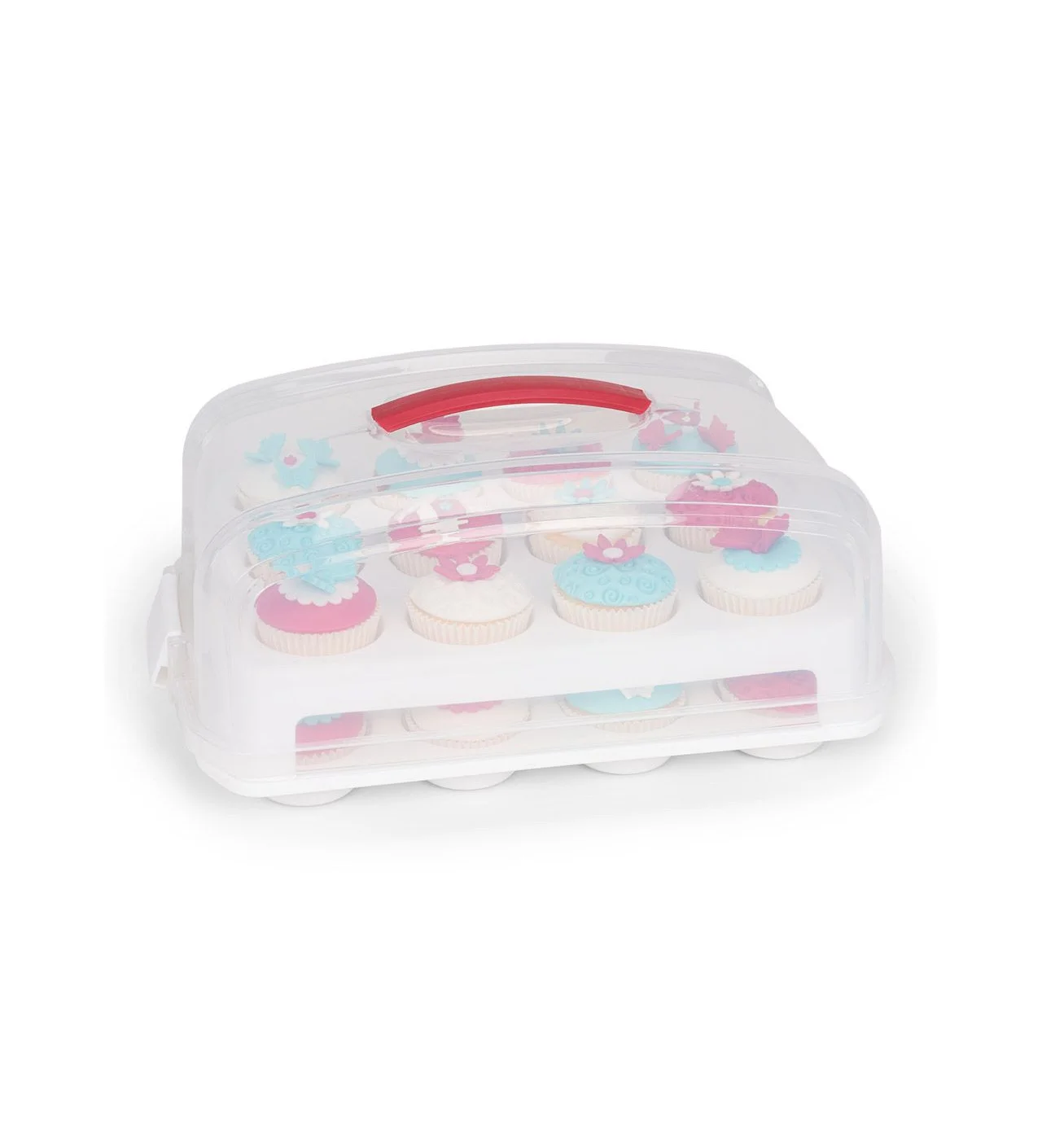 Afin de protéger le joli glaçage qui coiffe vos cupcakes, disposez la boîte à gâteau réutilisable Patisse à plat, et placez les séparateurs. Calez les gâteaux puis refermez la boîte en insérant les coins dans les encoches dédiées. Grâce à sa poignée, vous pourrez la transporter facilement.