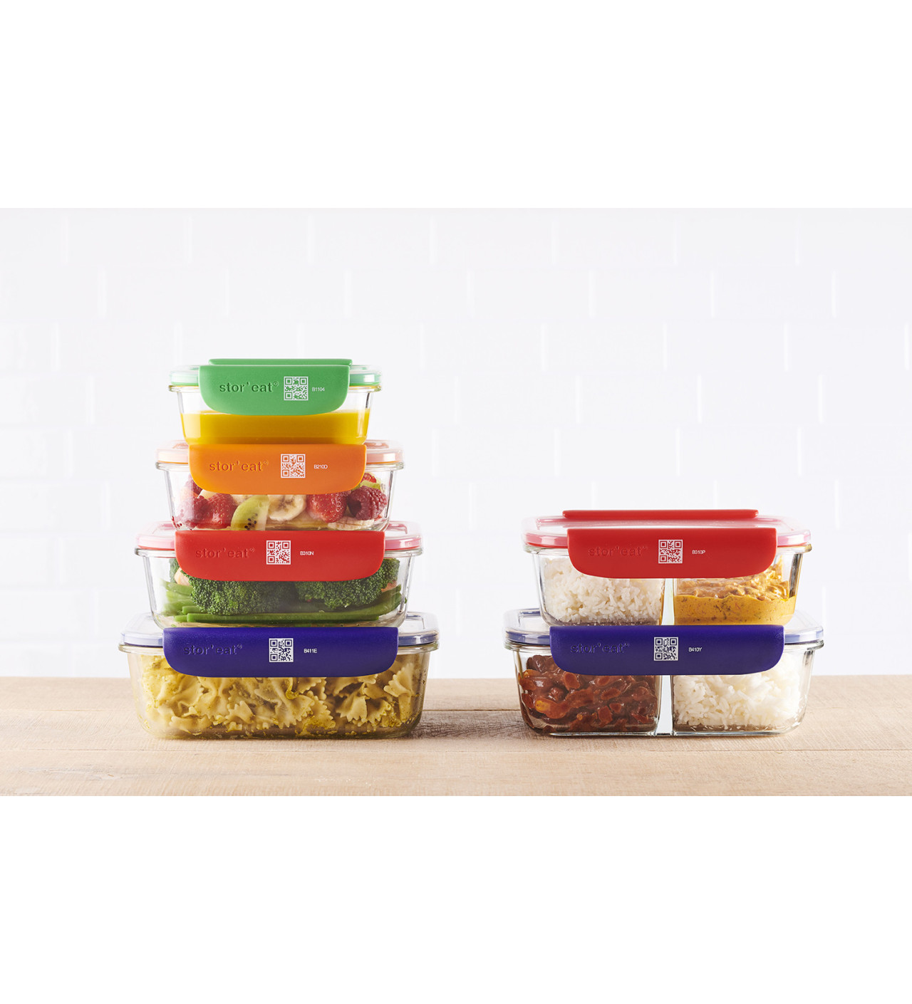Résistante aux températures extrêmes de -20°C à +400°C, la boîte de conservation connectée bleue est utilisable au micro-ondes, au congélateur, au réfrigérateur et même au four. Que ce soit pour conserver des restes de repas ou des aliments secs, la boîte hermétique d'une contenance de 1,52 litre saura s'adapter à vos besoins. La boîte de conservation Stor'eat possède des matériaux de qualité supérieure tel que du verre borosilicate (sans bisphénol A), un couvercle hermétique en polypropylène, ainsi que des poignées et un joint silicone colorés et amovibles.