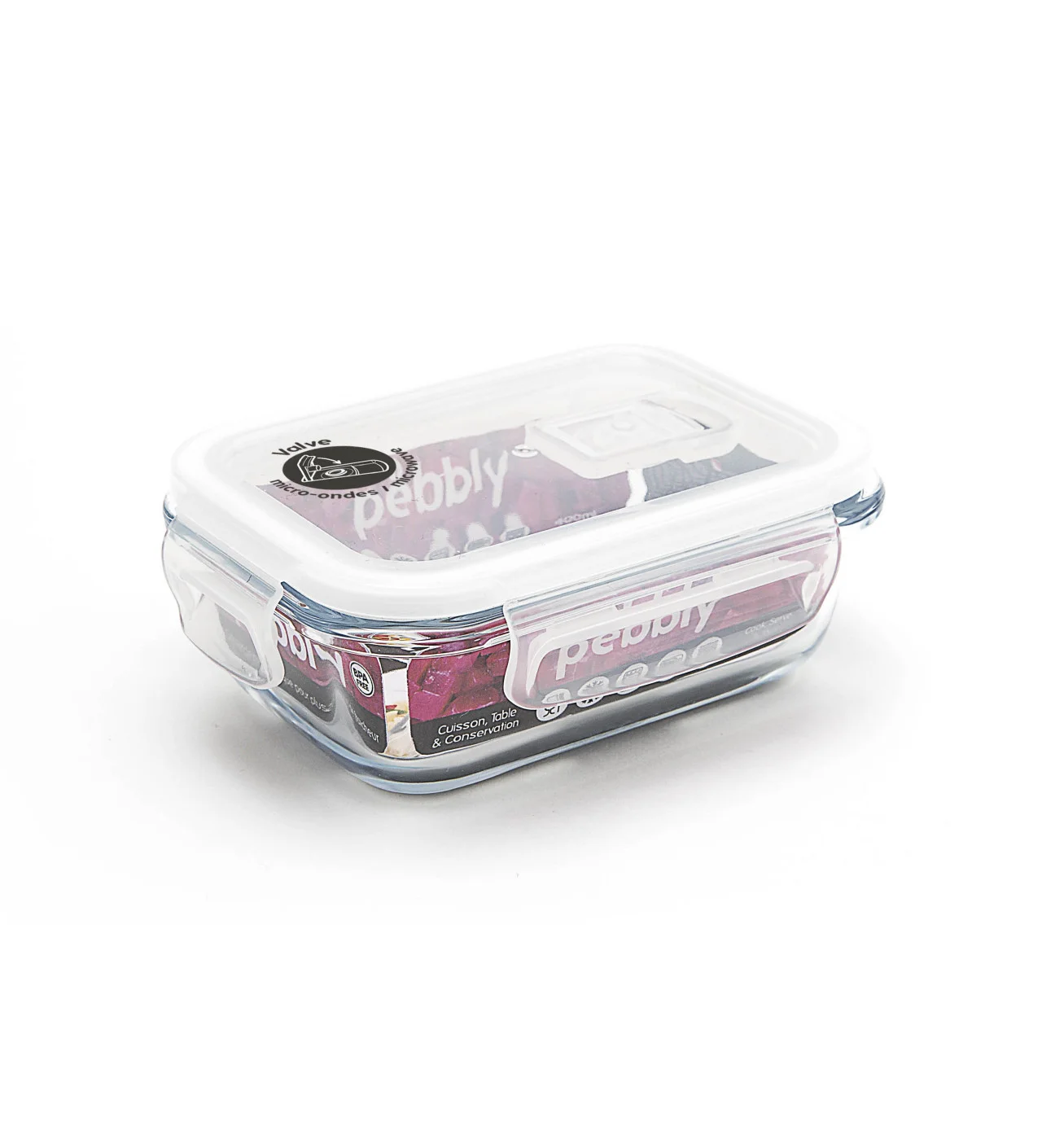 Découvrez la boîte de conservation en verre rectangle Pebbly qui sera une véritable solution pratique et efficace pour transporter vos repas quelle que soit l'occasion !