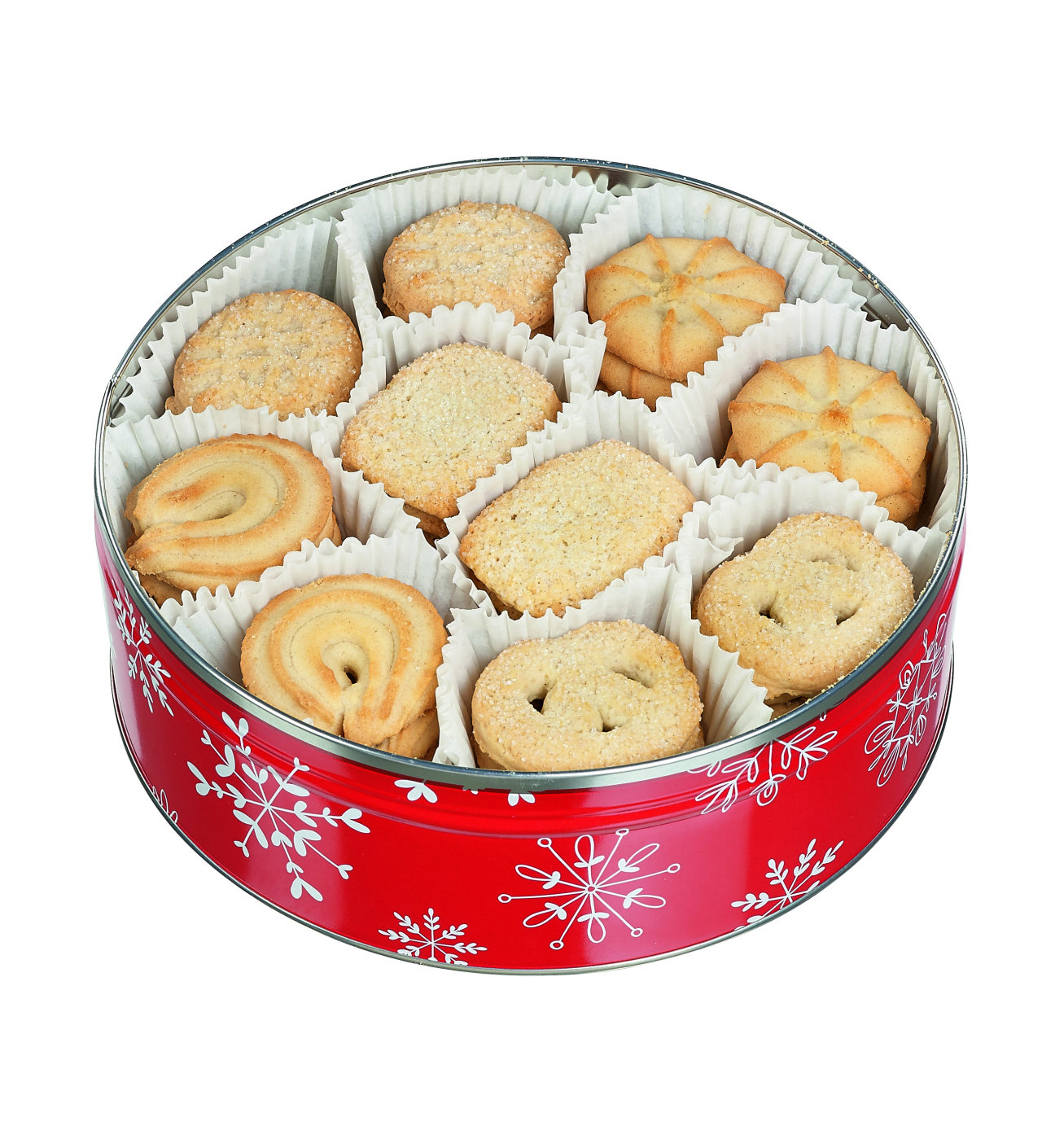 Comme une surprise de Noël, recevez l’un des trois modèles de boîtes aléatoirement. Ainsi, rangez et conservez vos gâteaux, biscuits et friandises grâce à cette boîte en métal rouge. Vous y découvrirez en l’ouvrant un assortiment de biscuit danois : nature, sablés et aux grains de sucre.