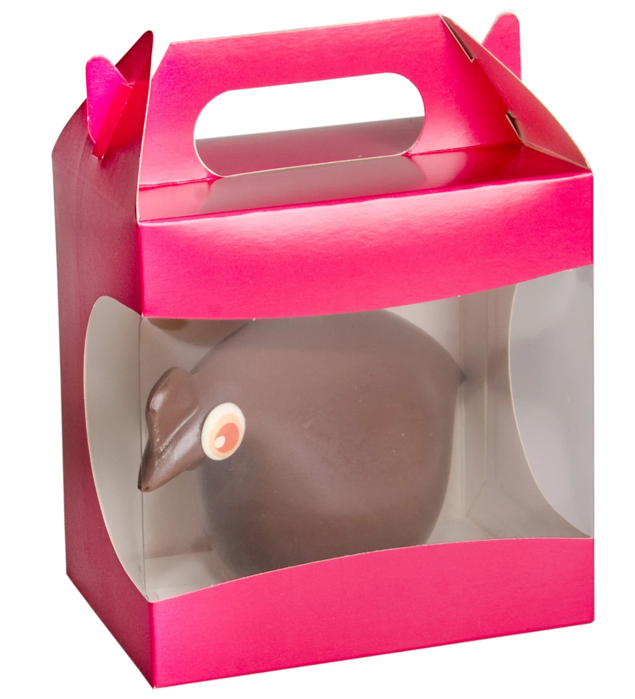 Mettez vos poules en chocolat à l'abri avec ces emballages pour chocolat spécialement conçus pour les moulages de Pâques. Vendues par lot de 25, ces boîtes pour poule en chocolat sont toutes munies d'une poignée facilitant ainsi le transport de vos moulages. Une fois vos poules en chocolat placées à l'intérieur de la boîte à chocolat une fenêtre transparente permettra à tous les gourmands de voir ce qui s'y cache.