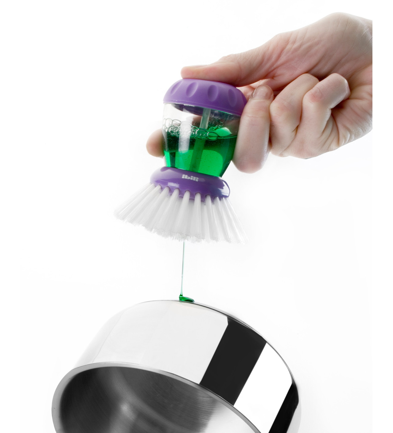 Laver sa vaisselle devient un véritable jeu d'enfant grâce à la Brosse à Vaisselle Ibili et son réservoir à produit vaisselle. Une simple pression sur le dessus de votre Brosse Ronde libérera une dose de savon.