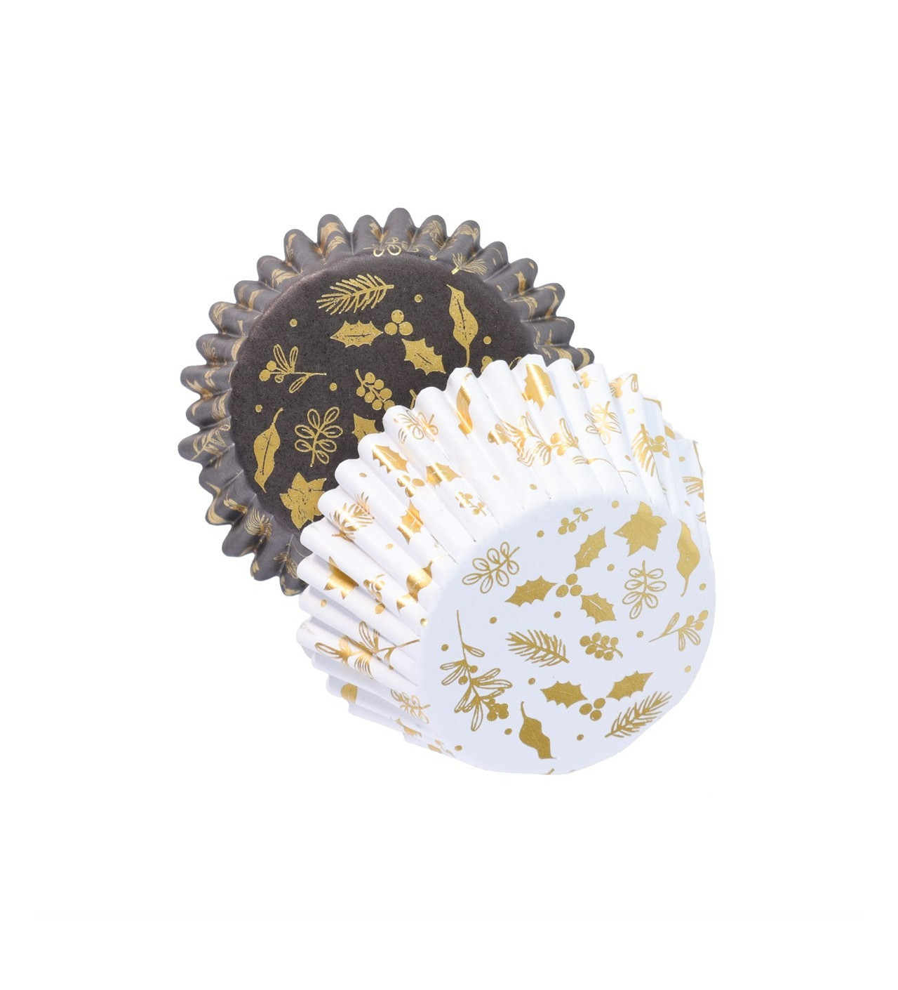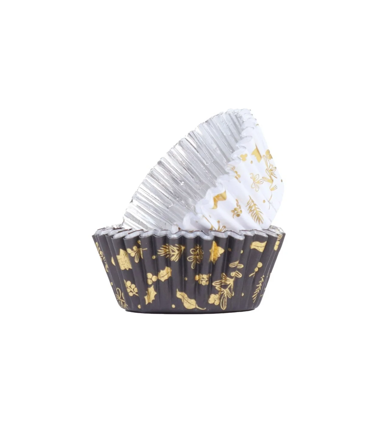 Caissettes Cupcakes Noir et Blanc Feuilles Or (x30) PME
