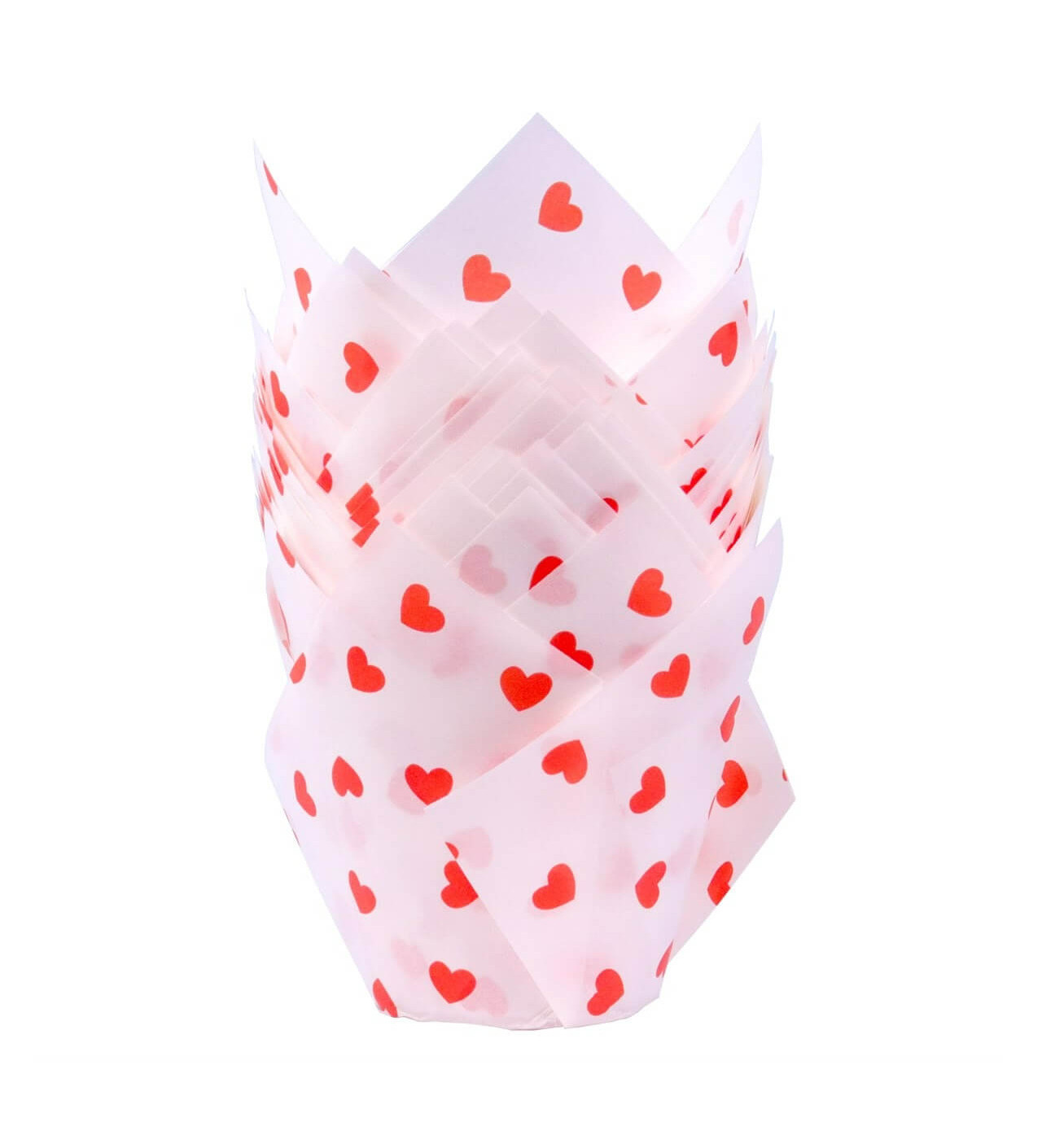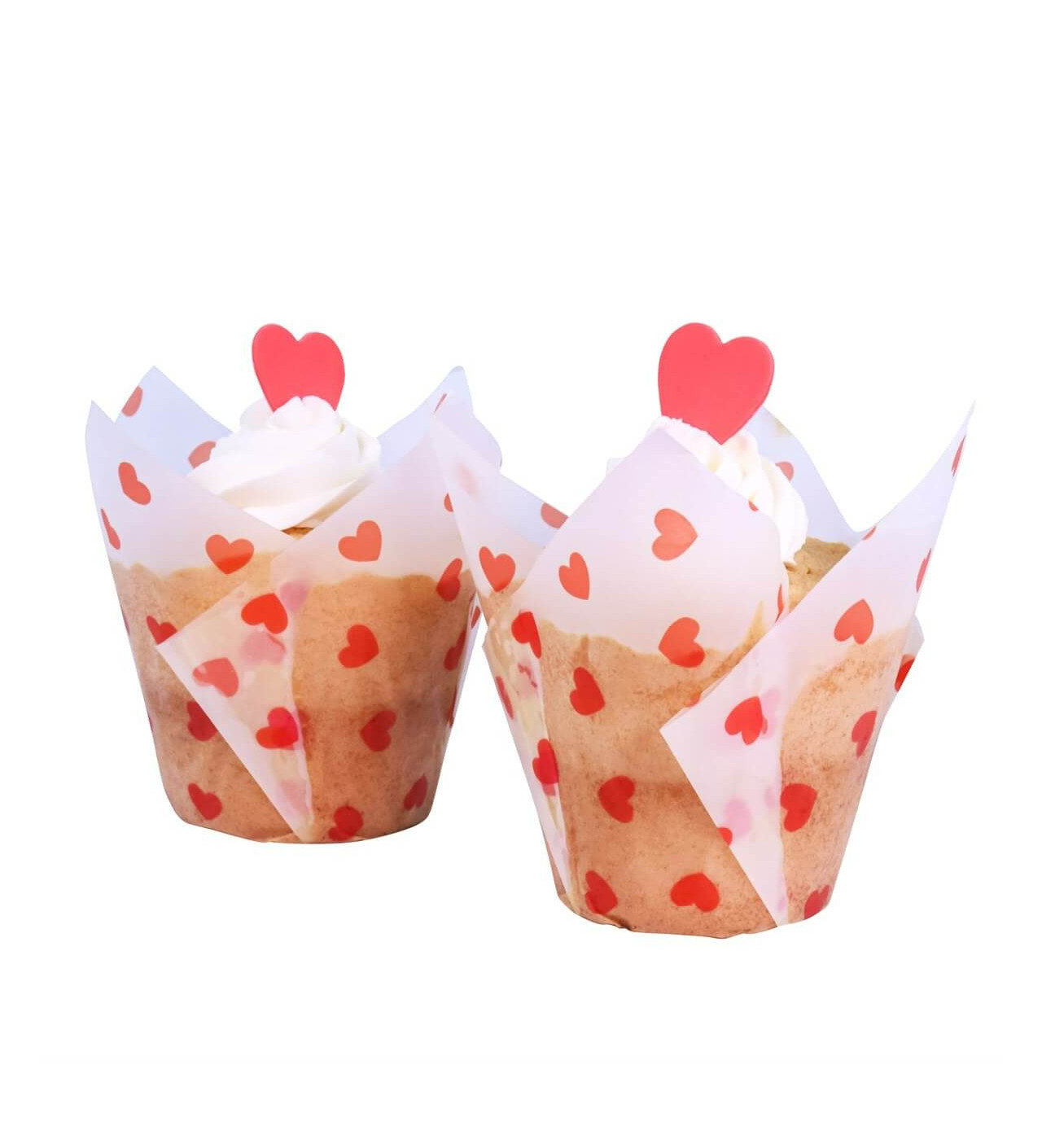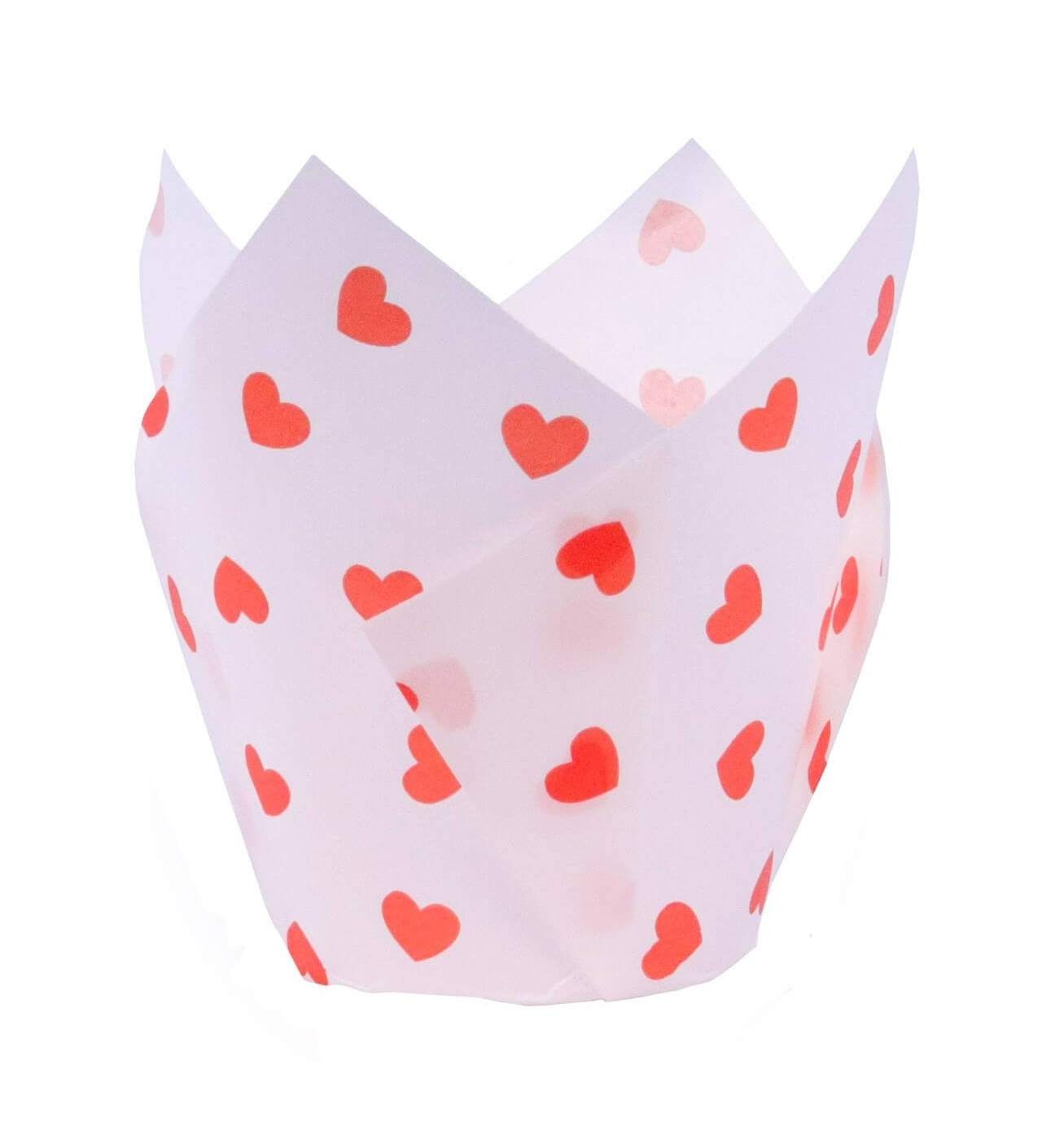 Ce lot de 24 caissettes cupcakes en forme de tulipe sont idéales pour célébrer la Saint Valentin, ou tout simplement pour un anniversaire, une fête « girly » ou sur le thème de l’amour. Leur couleur blanche apporte un côté chic et élégant, et leur design agrémenté de petits cœurs rouges rajoute une touche mignonne et adorable à ces caissettes.