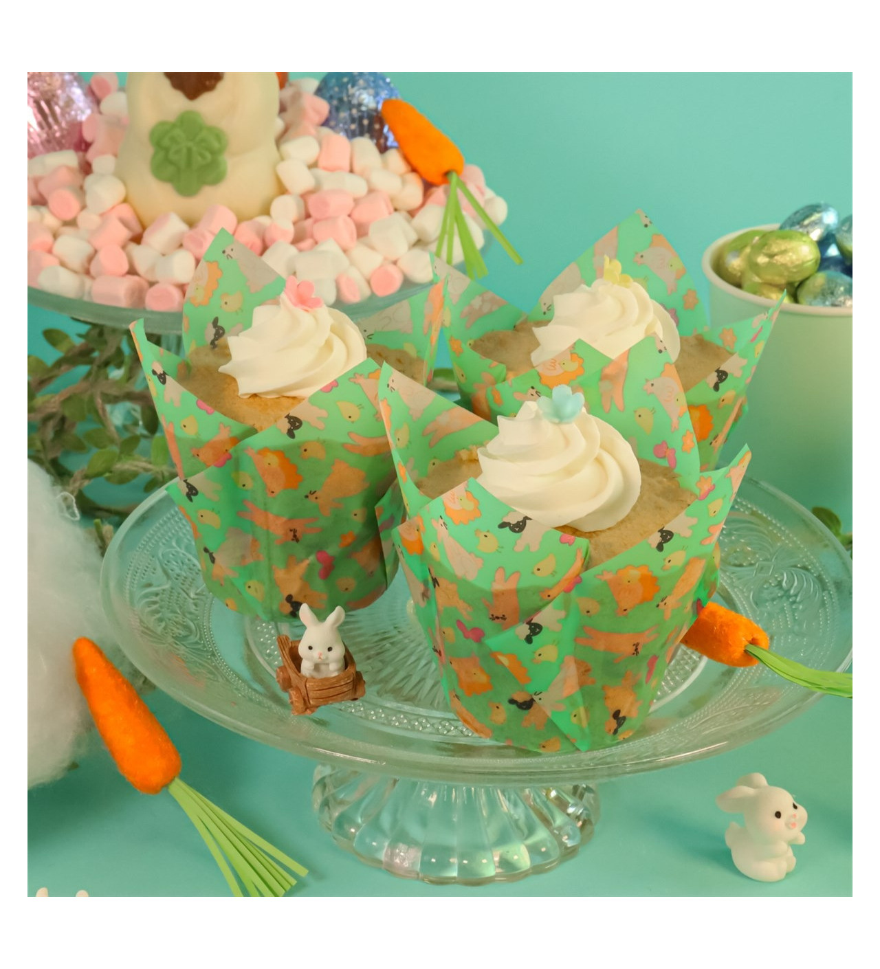 Inspirées de l’univers joyeux de Pâques, ces caissettes cupcakes se distinguent par leurs motifs animaliers et printaniers, parfaits pour créer une ambiance ludique et pleine de tendresse autour de vos desserts.