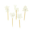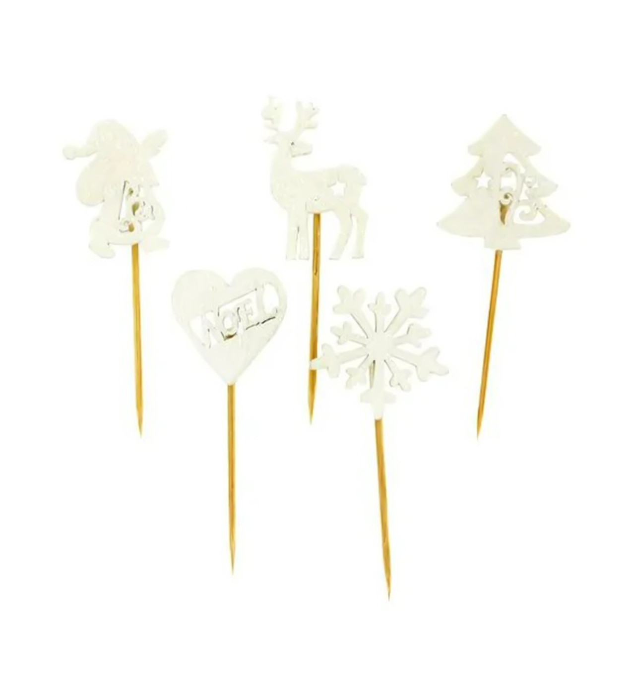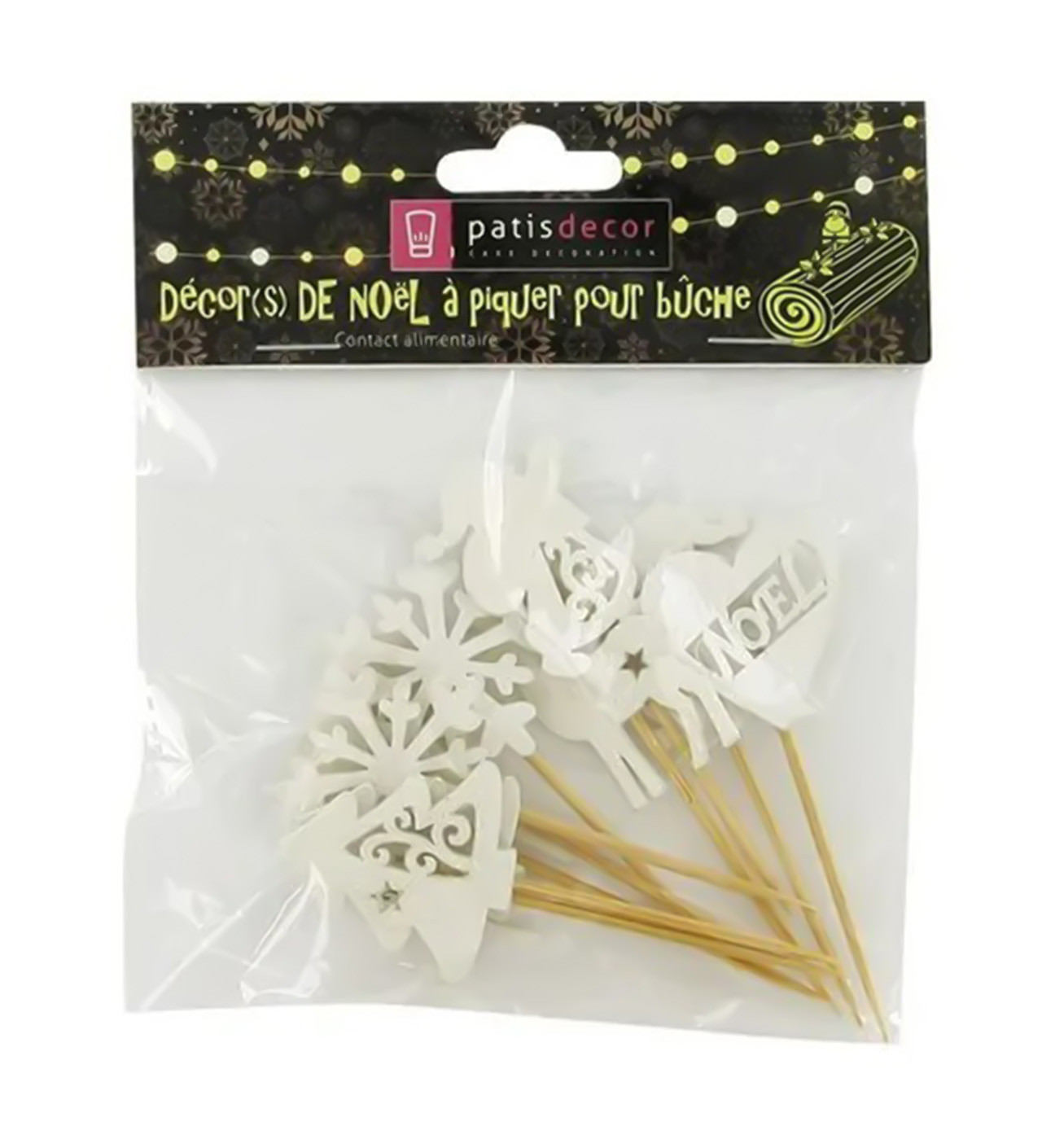 Cake Topper Bois Noël Blanc Pailleté (x10) Patisdécor