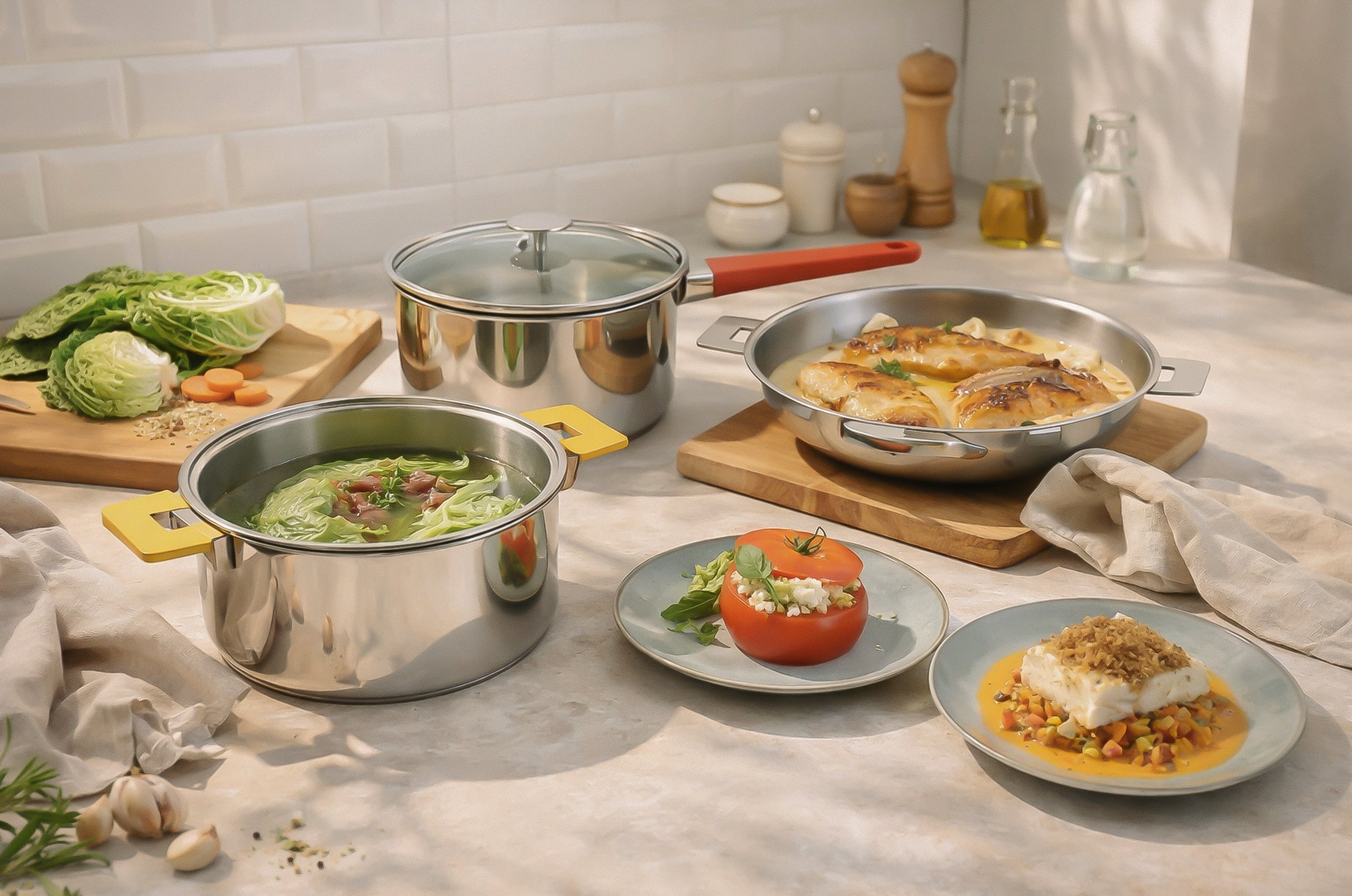 Pour préparer de bons petits plats sains et savoureux pour les repas de la semaine ou pour des occasions spéciales, choisissez la casserole et cuit vapeur inox 24 cm Biome Cristel et leur 2 poignées amovibles en résine thermo-durcie blanche !