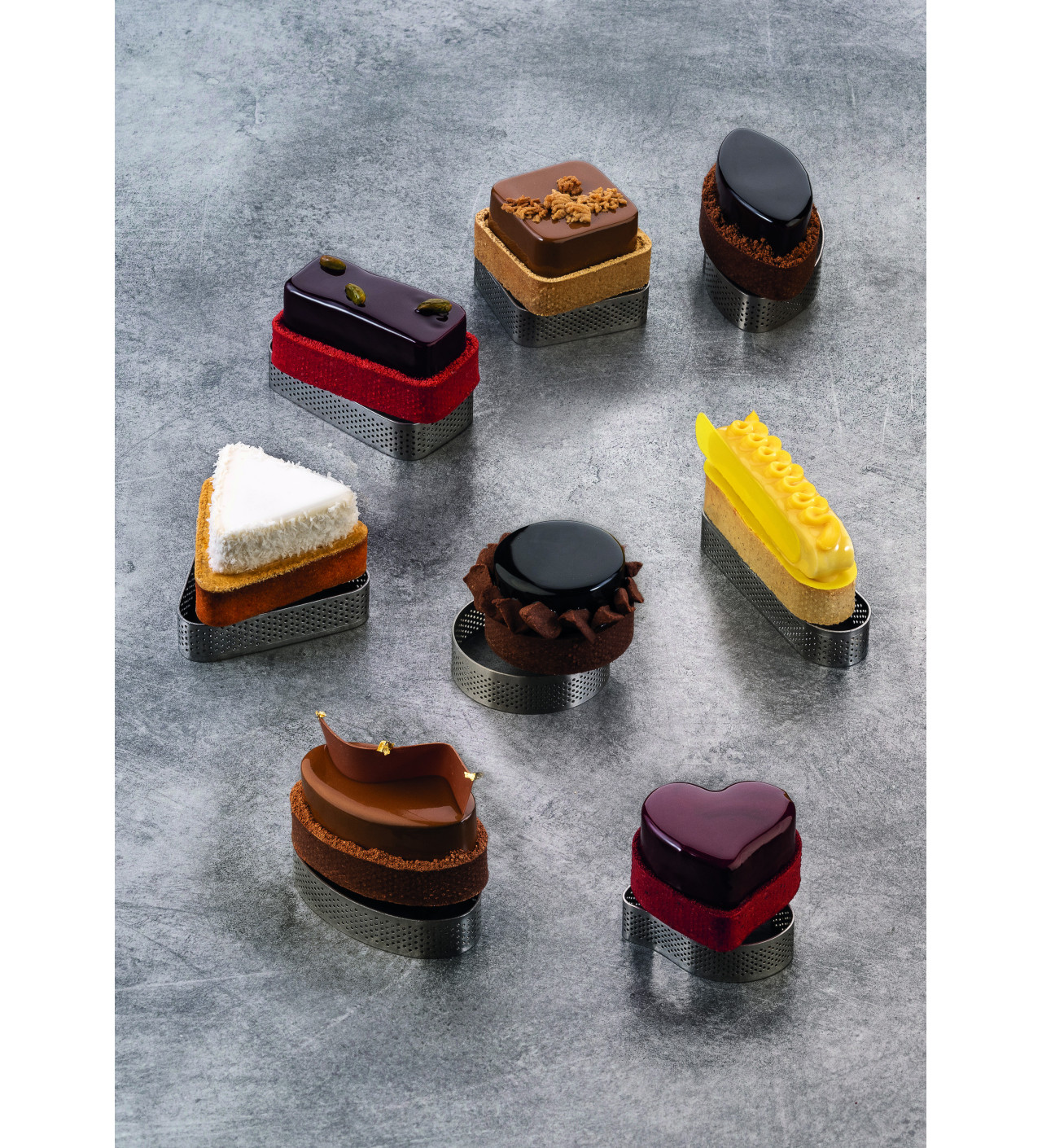 Fonds de tartes, biscuits et mousses pourront être préparés en toute simplicité dans ce Cercle à Tarte Inox. D'une forme originale, ce Cercle Inox Pavoni vous permettra de réaliser des triangles aux pointes arrondies.