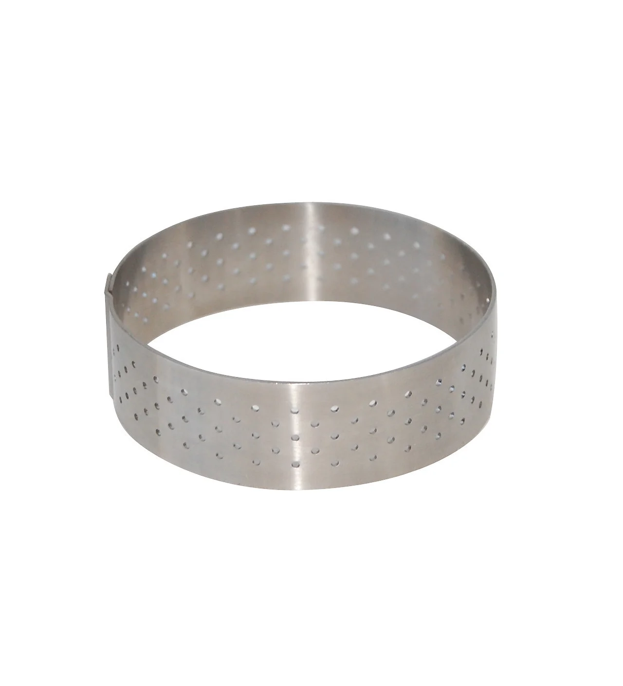 En partenariat avec l'École du Grand Chocolat Valrhona, De Buyer a créé ces nouveaux cercles perforés de petits trous pour une cuisson uniforme des bords de tarte.