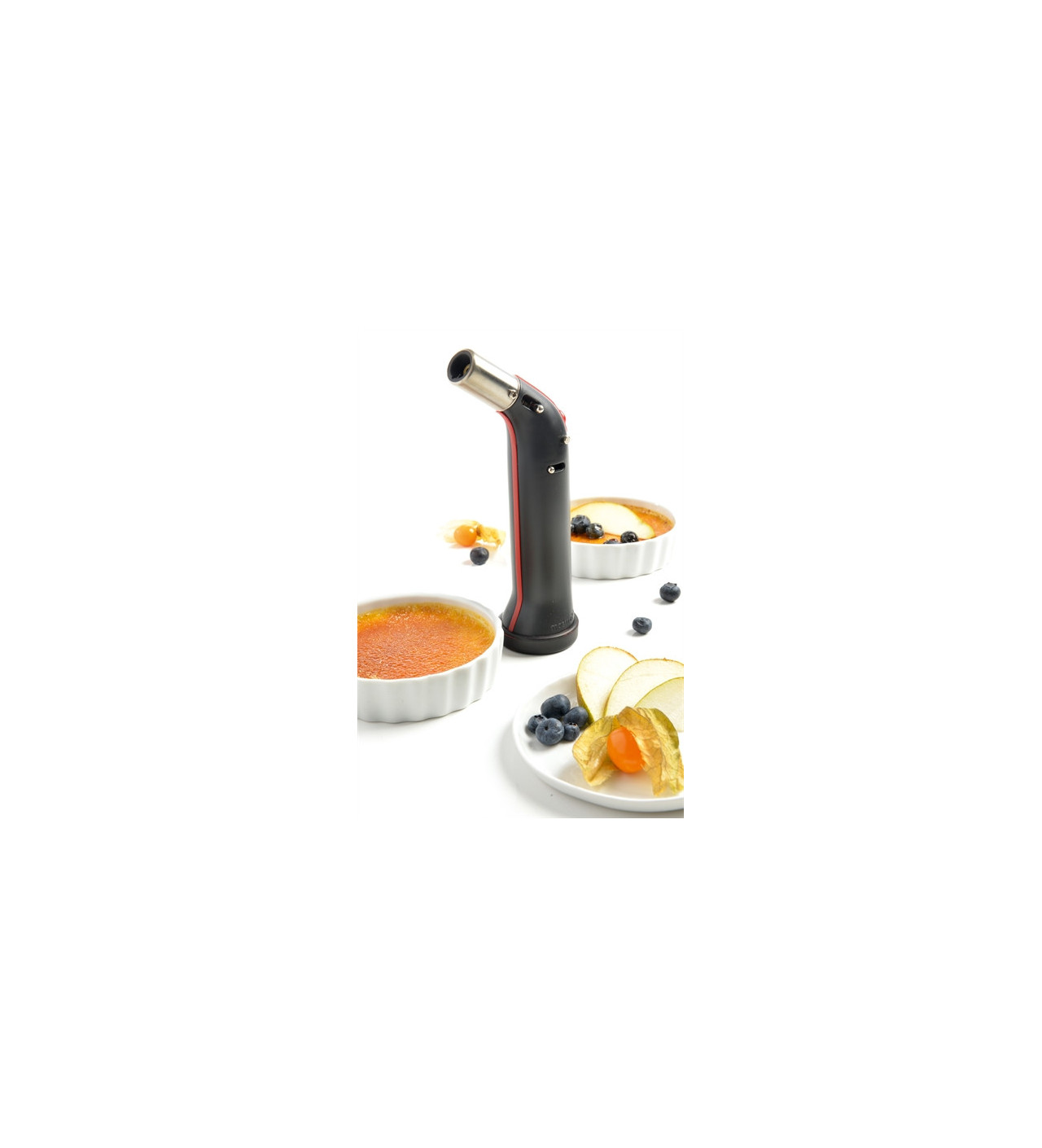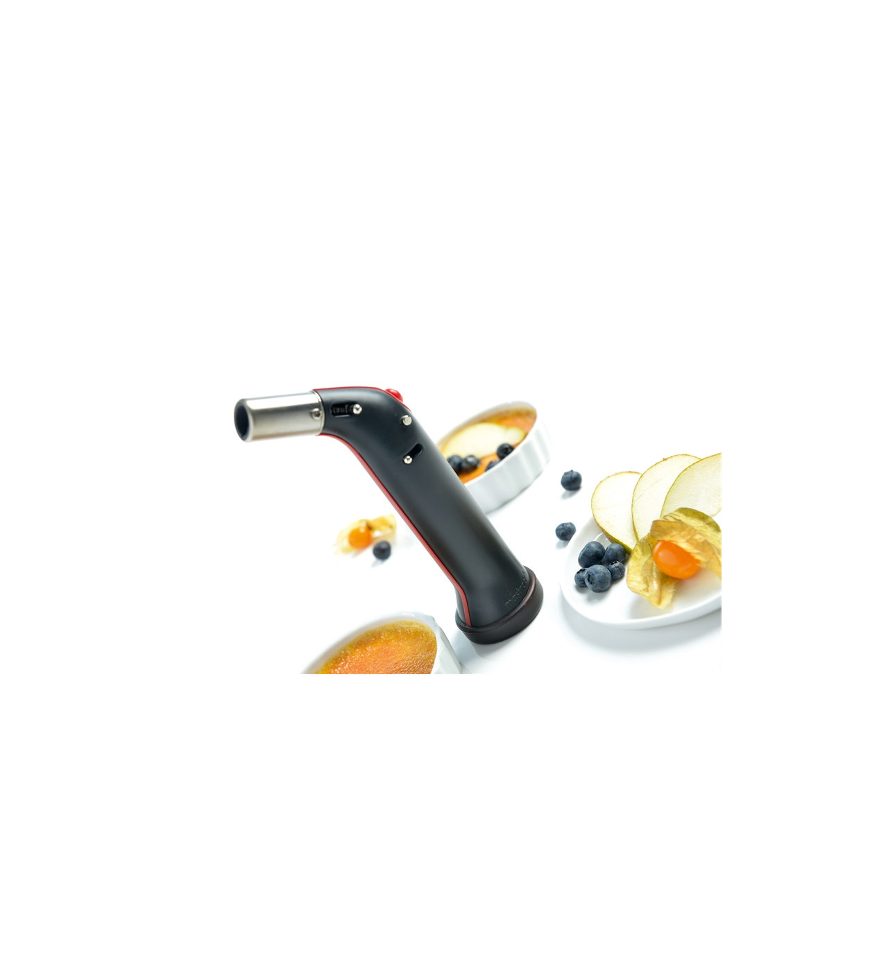 Le chalumeau à gaz offre de multiples utilisations. S'il peut caraméliser une crème ou brunir une meringue italienne, il peut également servir à peler les tomates, flamber les noix de Saint-Jacques ou encore brunir la viande.