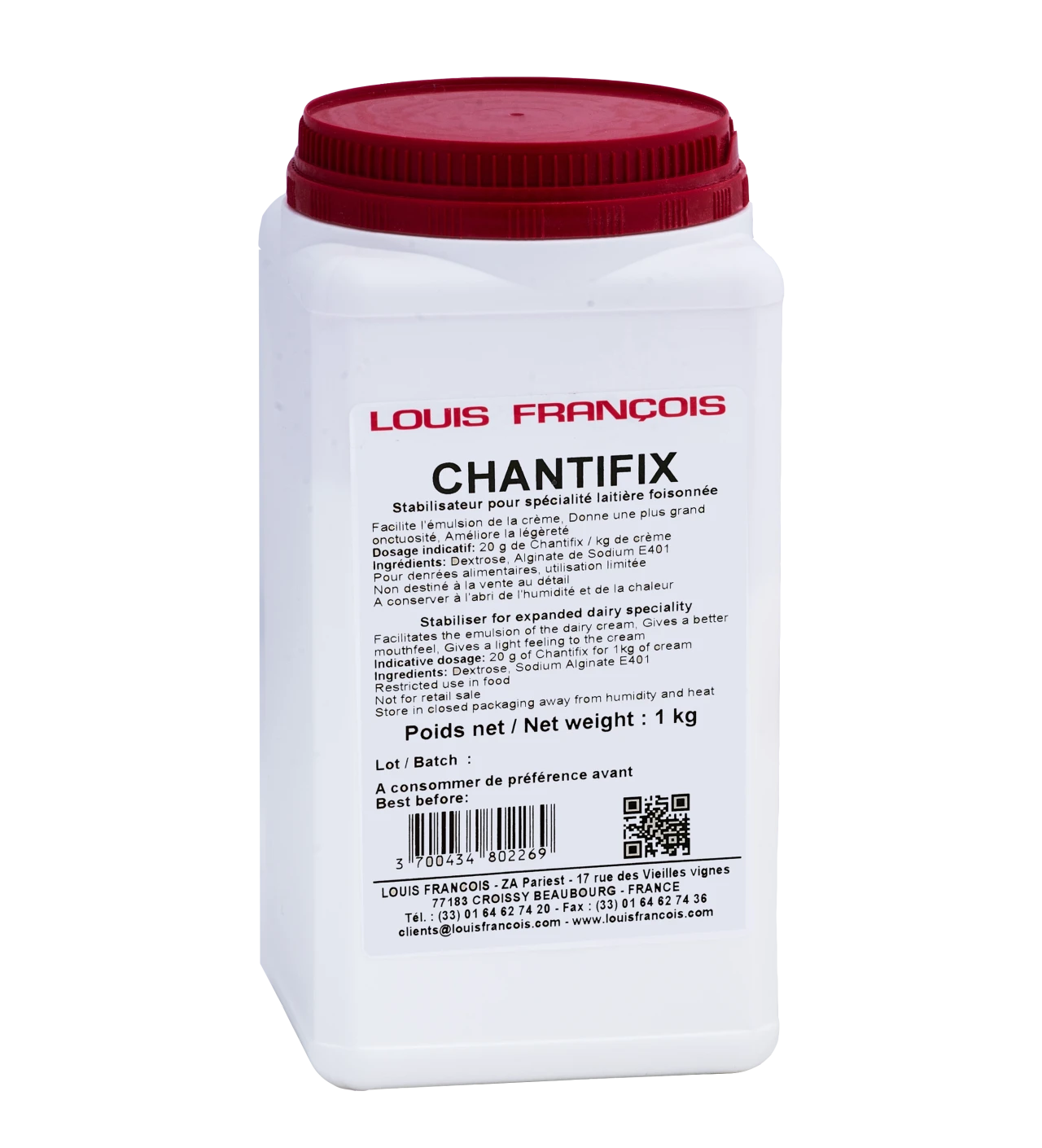 S’utilisant à froid et résistant sans peine à la congélation, le chantifix 1 kg Louis François vous permet de confectionner vos crèmes à l’avance sans craindre qu’elles ne perdent leur allure et leur texture.