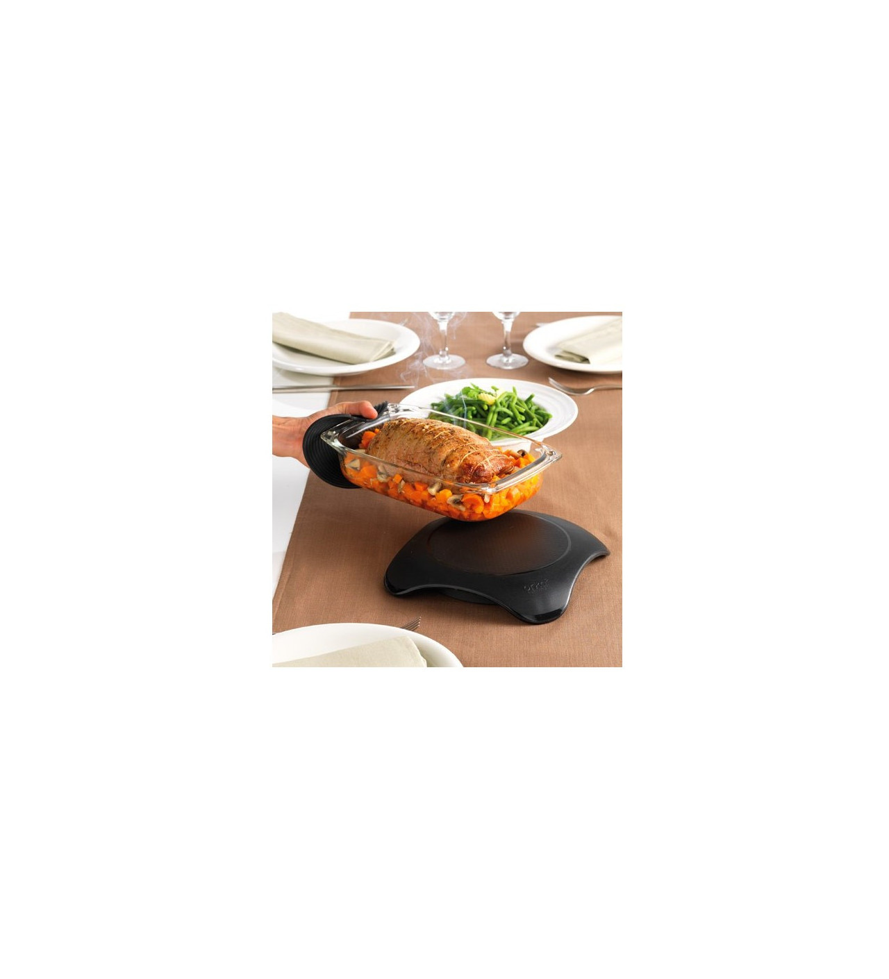 Le Chauffe-plat au micro-ondes Magma noir de Mastrad est un dessous de plat particulièrement ingénieux ! Passer le deux minutes au micro-ondes et il gardera votre plat au chaud pendant 1 heure ! Sa base et ses contours isolant permettent e le manipuler en toute sécurité, sans risque de se brûler !