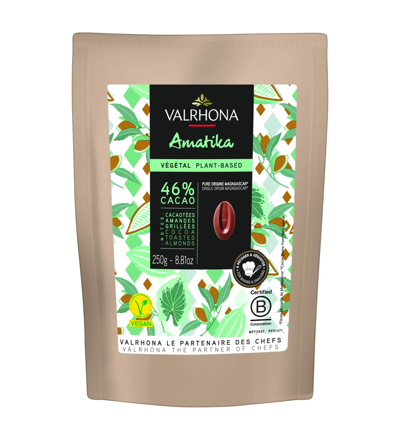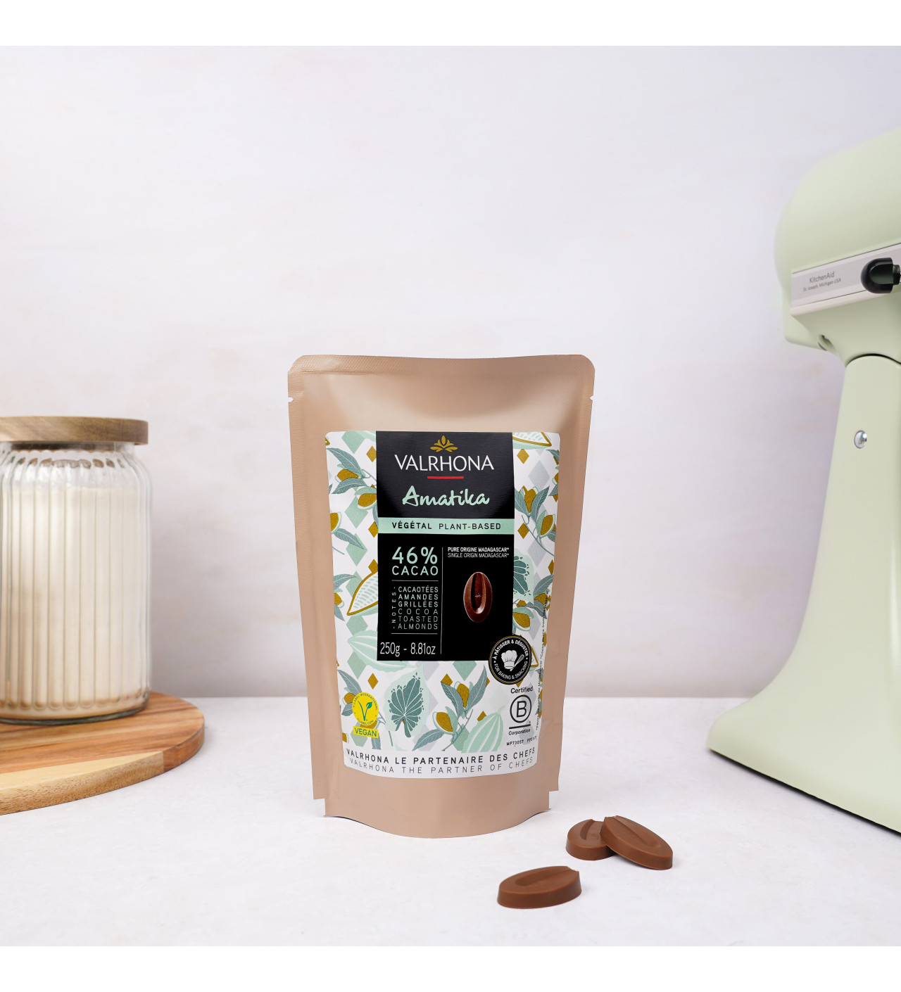 Pour réaliser vos plus belles recettes de desserts, choisissez les meilleurs ingrédients. Valrhona vous propose aujourd'hui un chocolat de couverture d'exception qui conviendra à tous les régimes. En effet, le chocolat au lait Amatika est certifié vegan et permet donc d'ouvrir le monde de la gourmandise à tous.