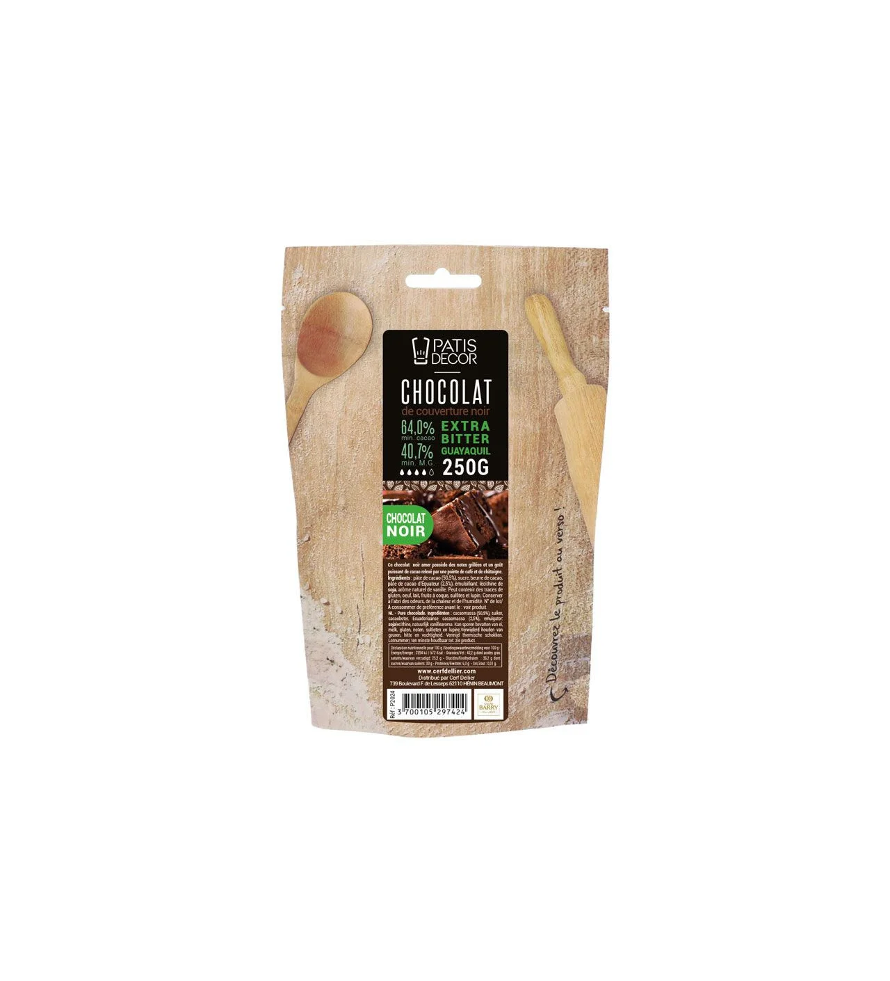 Chocolat de Couverture Noir Extra Bitter Guayaquil 64% 250 g Patisdécor