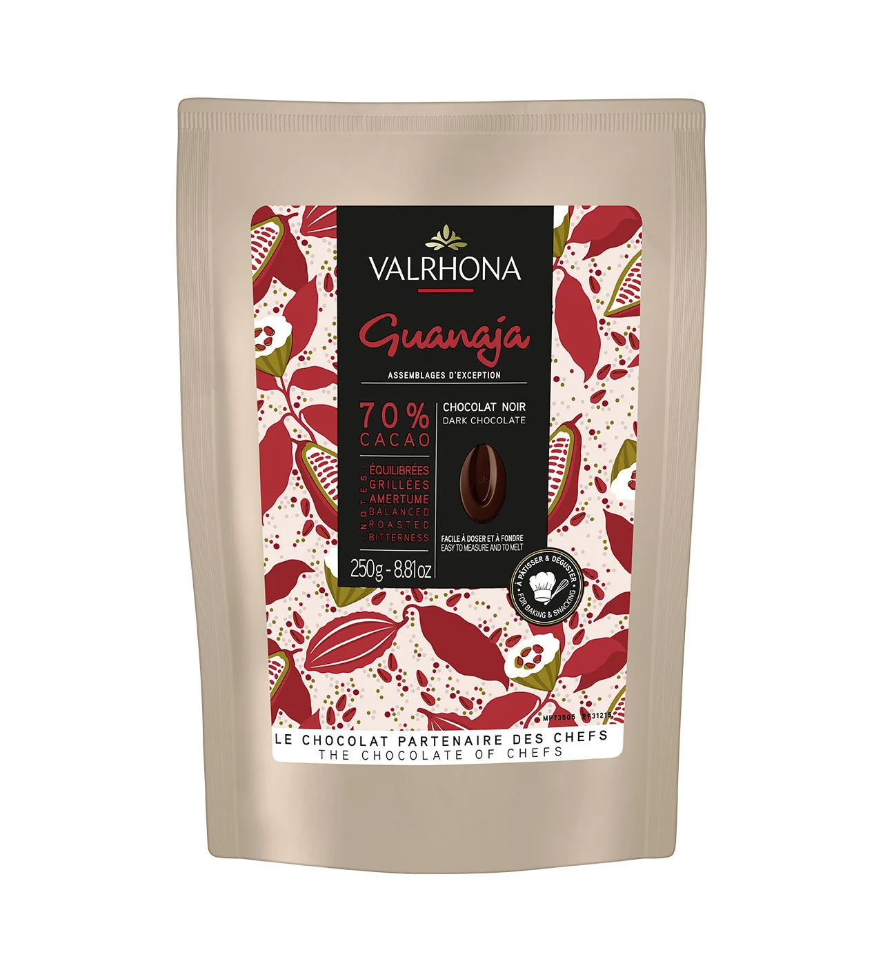 Idéal pour la réalisation de vos desserts, enrobages, glaces, sorbets, moulages, tablettes, mousses, décors, crémeux et ganaches, ce chocolat de la collection des Assemblages d'Exception Valrhona est facile d'utilisation puisque ses fèves se dosent et fondent parfaitement.