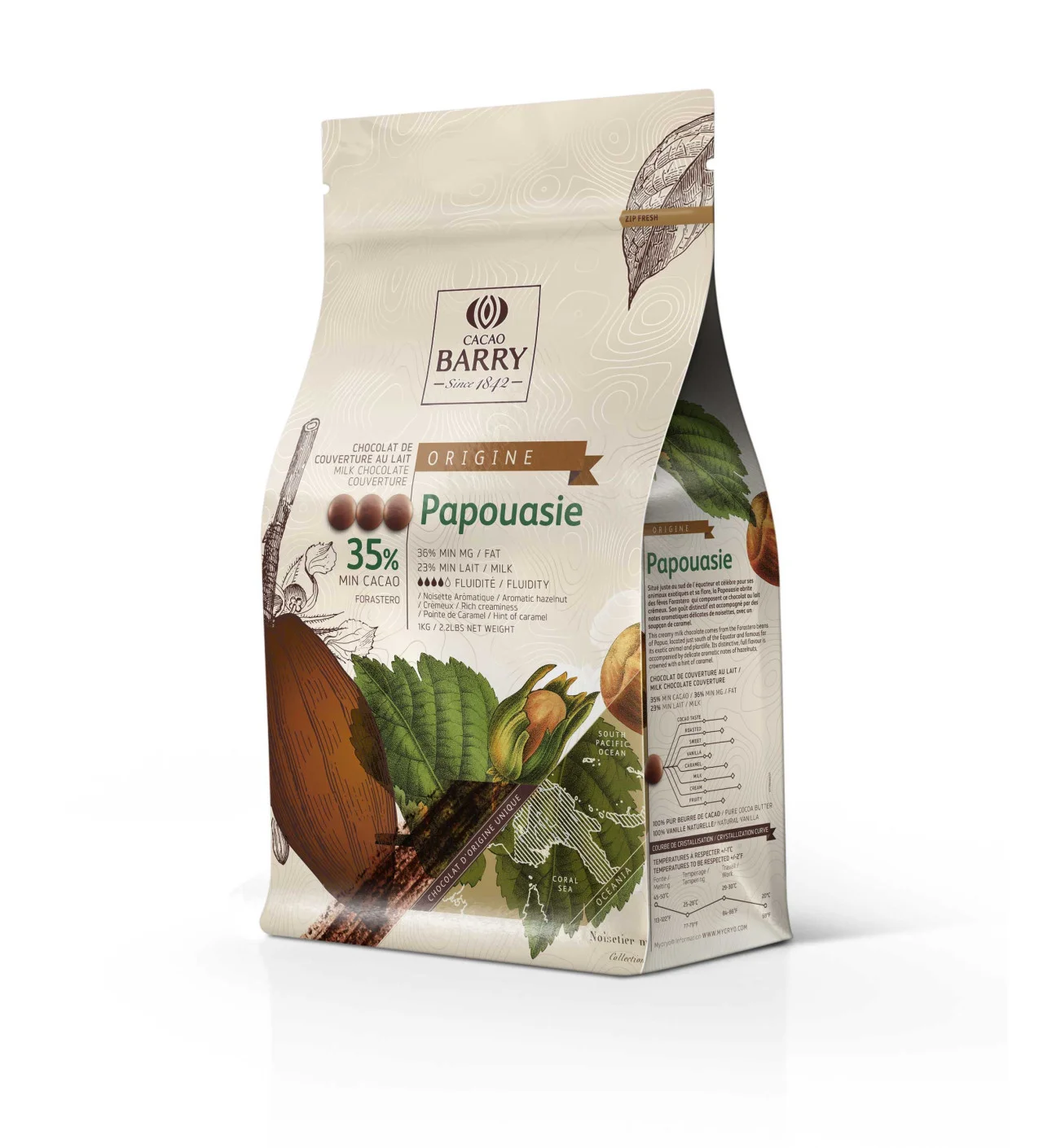 Chocolat de couverture lait en pistoles Origine Papouasie 35,7% cacao 1 kg