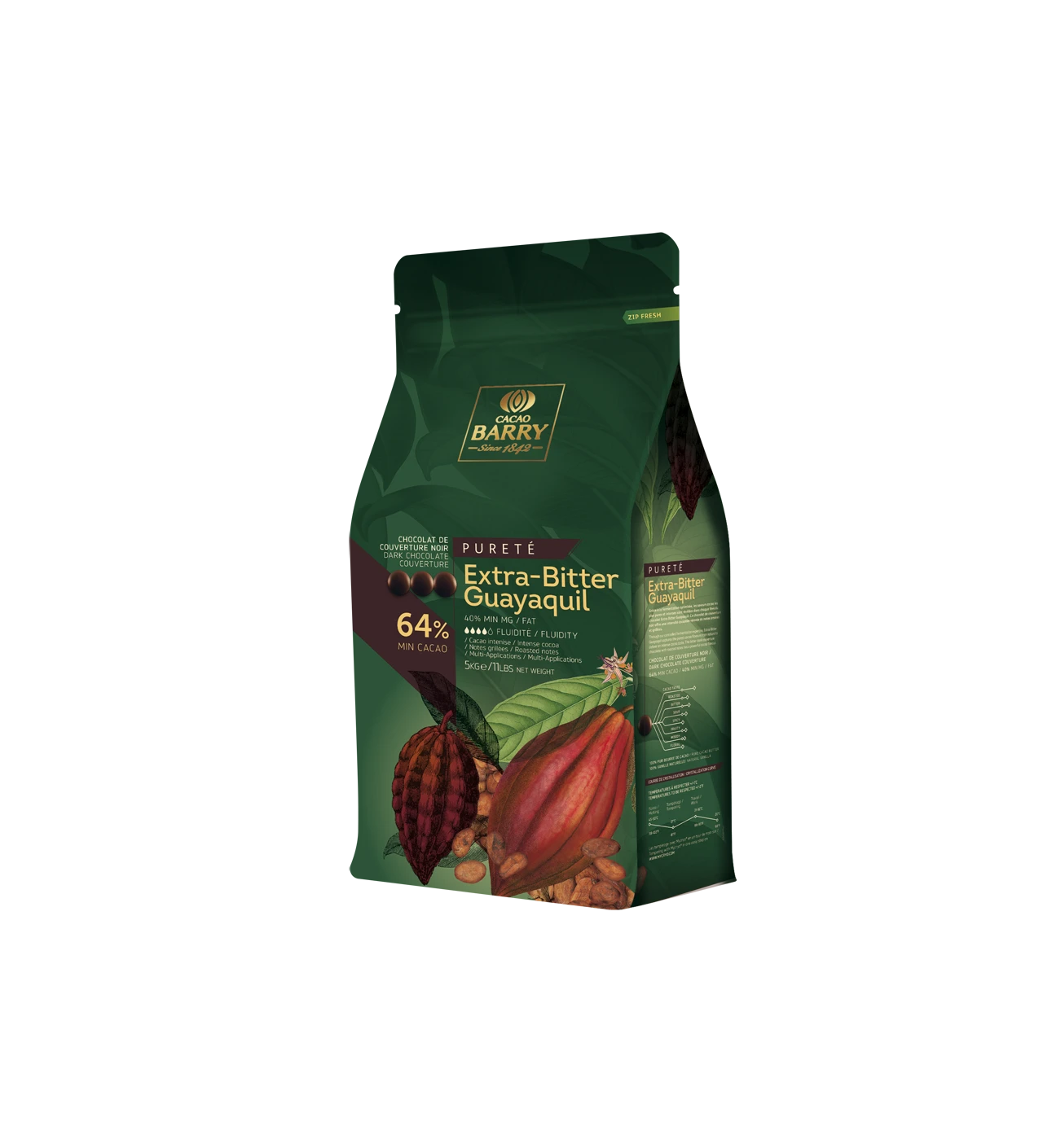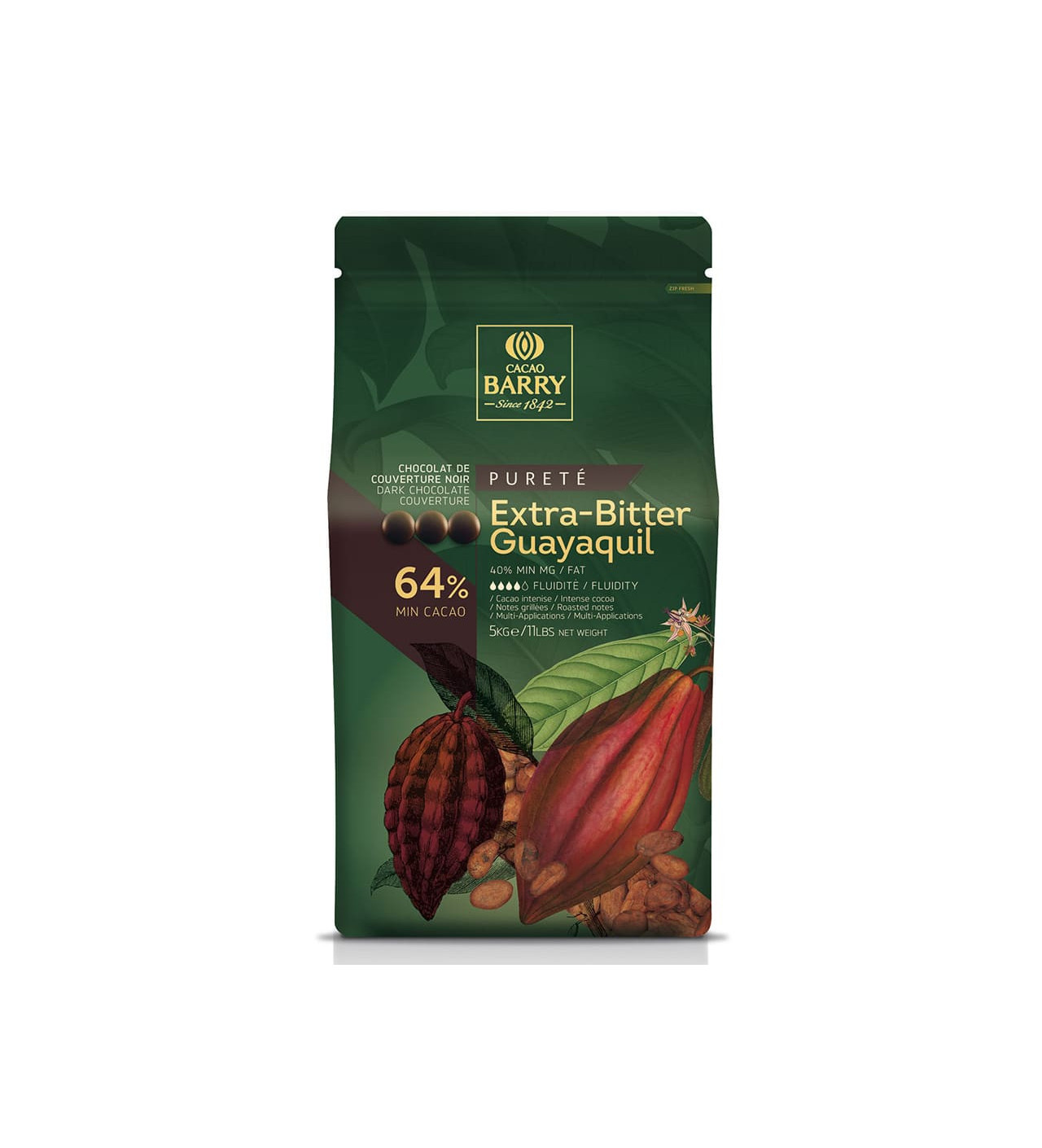 Chocolat de couverture noir en pistoles Extra-Bitter Guayaquil 64% de cacao 5 kg