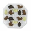 Excellente alternative aux oeufs de Pâques si vous souhaitez innover, cet assortiment se composent de chocolats pour Pâques de formes diverses, sur le thème des animaux, avec des poules, canards, moutons...
