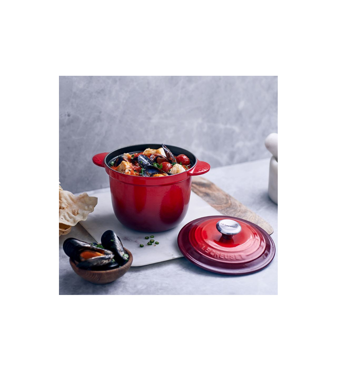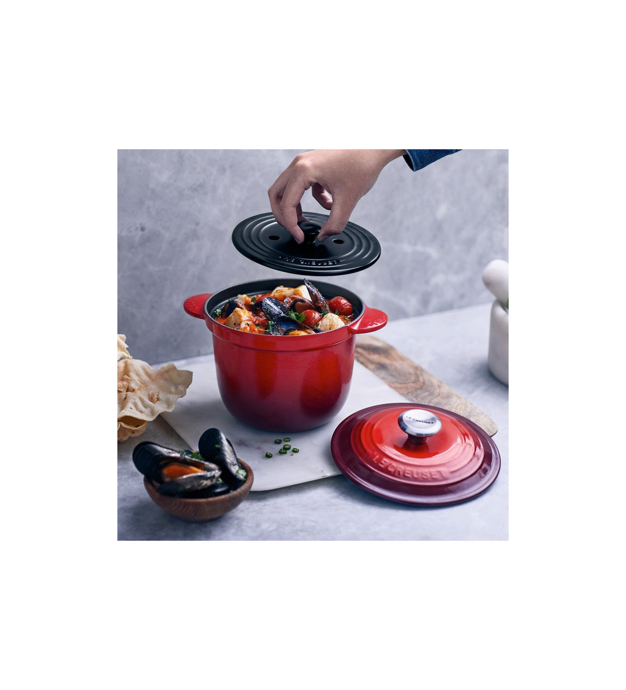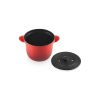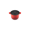 La cocotte en fonte Every Le Creuset est robuste (garantie à vie) son intérieur en émail noir mat vous assure résistance dans le temps et aux rayures. La cocotte haute rouge cerise est munie de deux couvercles : un couvercle bombé en fonte et un couvercle intérieur anti-débordement en céramique. Ce dernier est muni de deux perforations assurant ainsi l'évacuation de la vapeur et la bonne hydratation lors de la cuisson pour des aliments savoureux et tendres.