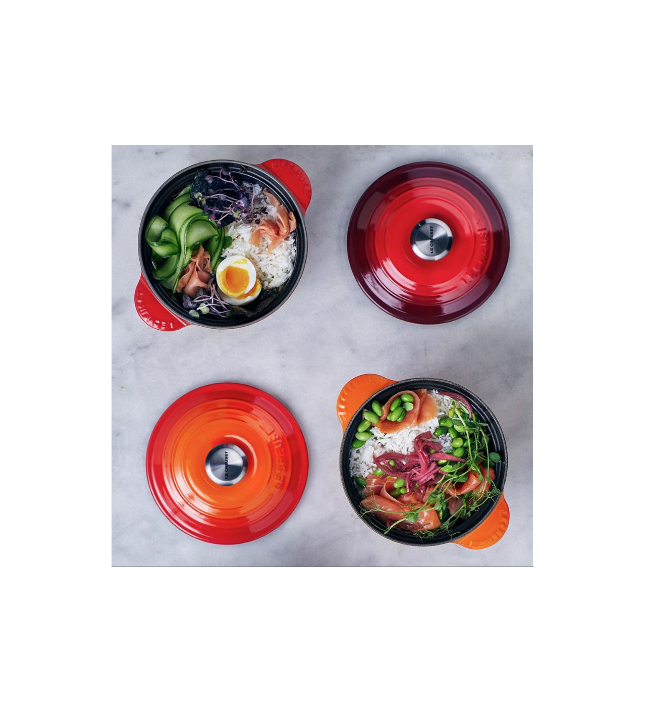 Née en 1925 en Picardie, la marque Le Creuset perpétue un véritable savoir-faire. Transmise de génération en génération son emblématique cocotte en fonte émaillée saura trouver sa place dans votre cuisine. La marque vous accompagne également avec d'autres ustensiles de qualité, aux nuances tendances et originales pour s'adapter à votre intérieur.
