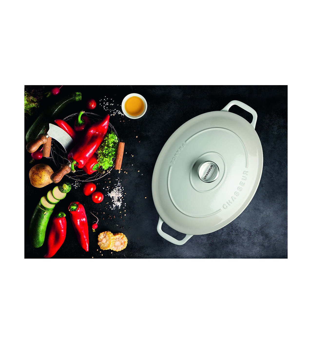Cocotte en Fonte Ovale 33 cm Macadamia Chasseur