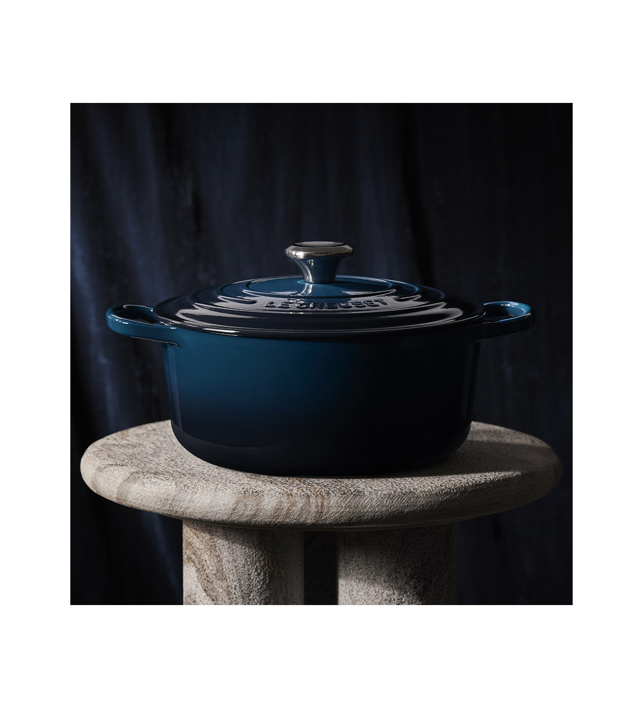 La réalisation de bons plats plein de saveurs n’a rien de bien complexe, il faut simplement les bons ustensiles. Le Creuset met à votre disposition toute la qualité de la cocotte en fonte ronde 28 cm nuit. Se plaçant à mi-chemin entre la tradition de la cuisine française, et la modernité de nos cuisines, cette cocotte de cuisine vous sera vite indispensable.