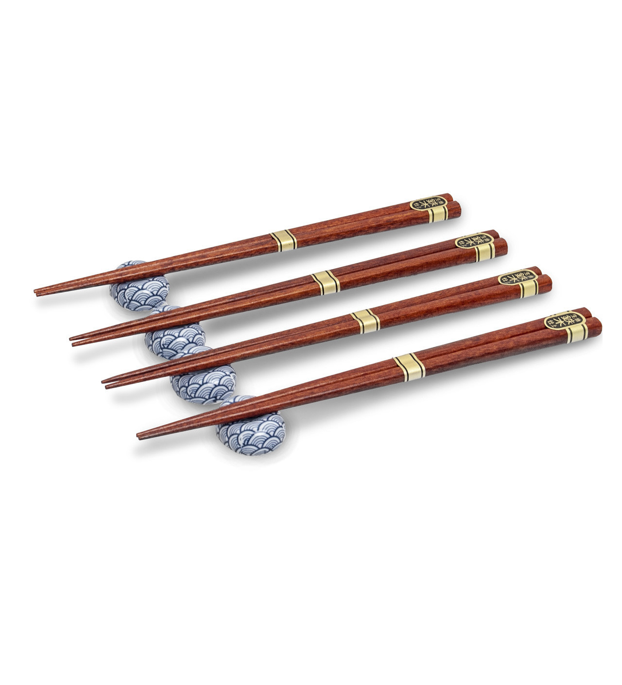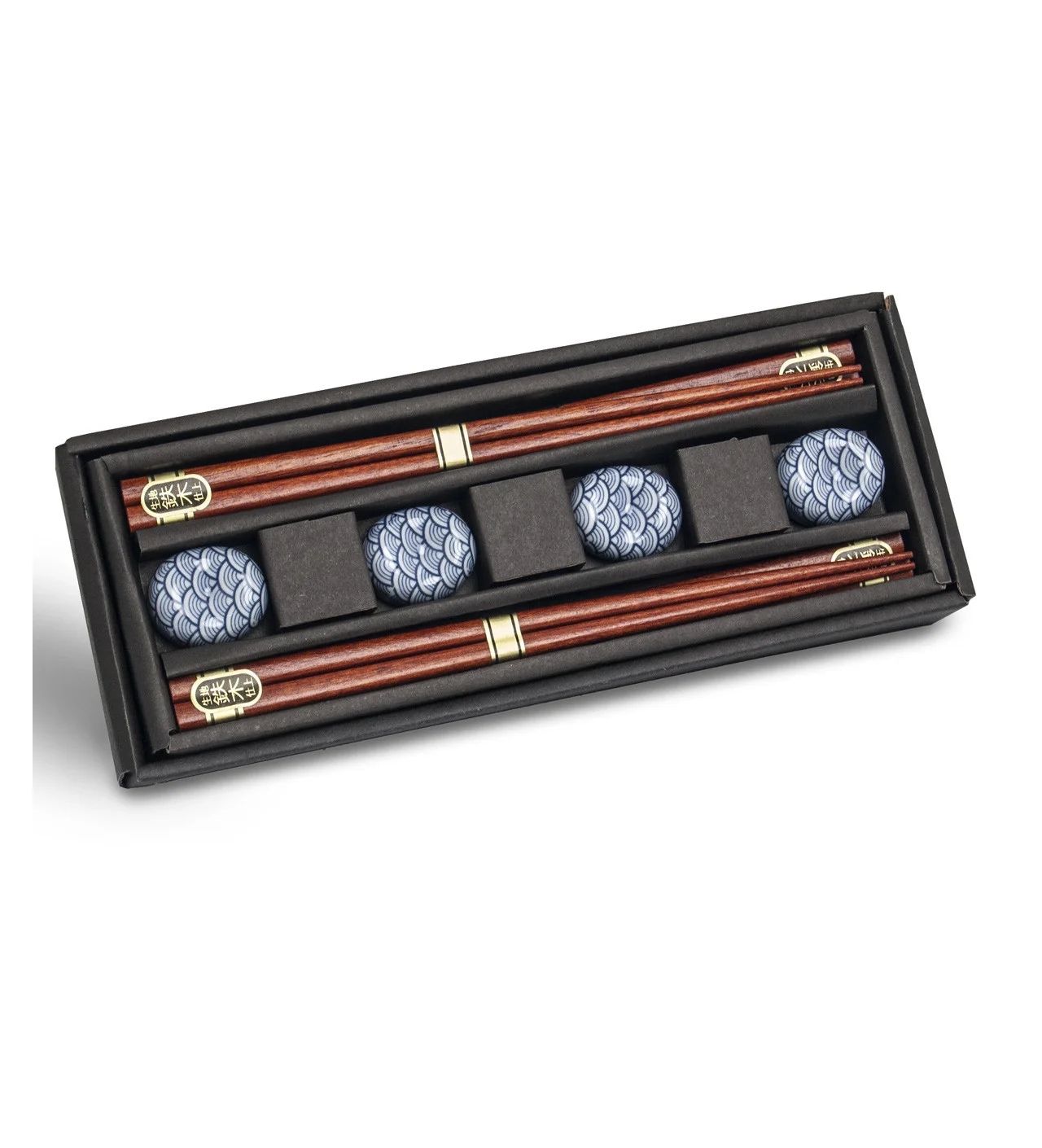 Coffret 4 Paires de Baguettes Japonaises et Porte Baguettes Nishikidori