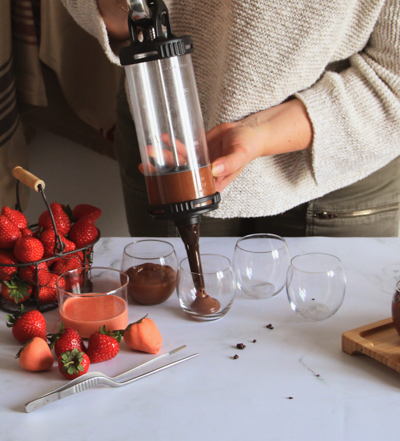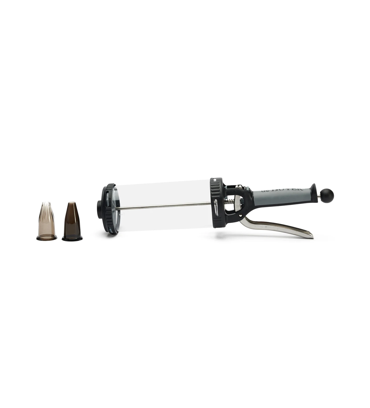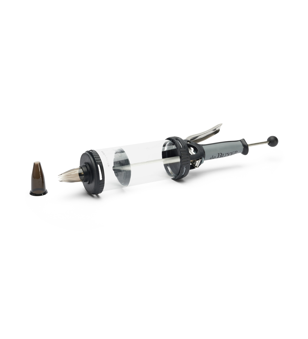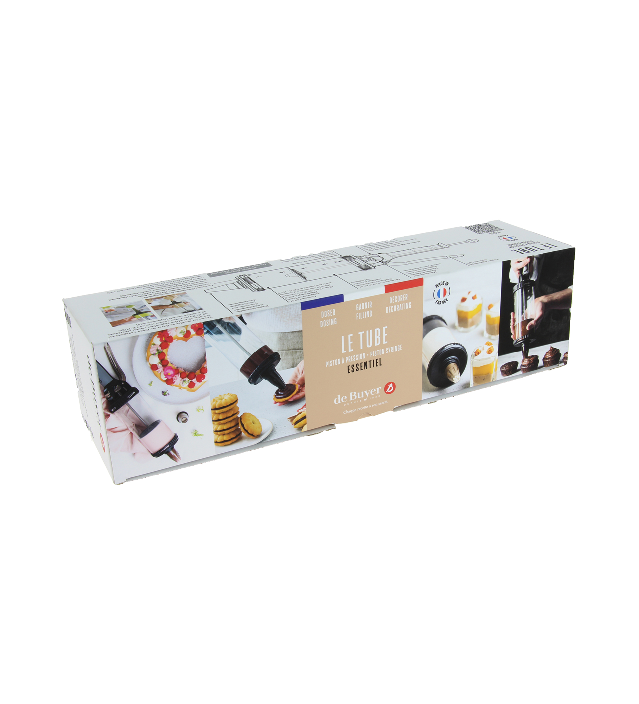 Le Tube Essentiel permet également de contrôler facilement la régularité de votre pochage puisque le piston de cuisine est transparent et gradué. Vous pourrez donc créer des choux ou des macarons aussi réguliers que les professionnels si vous en avez l'envie. Le piston est accompagné de deux douilles en tritan robustes. Les deux mesure 11 mm de diamètre et l'une est cannelée tandis que l'autre est lisse. Vous aurez donc la possibilité de varier l'allure de vos pochages en un simple geste. Profitez de ce coffret De Buyer pour explorer les limites de votre gourmandise en toute simplicité.