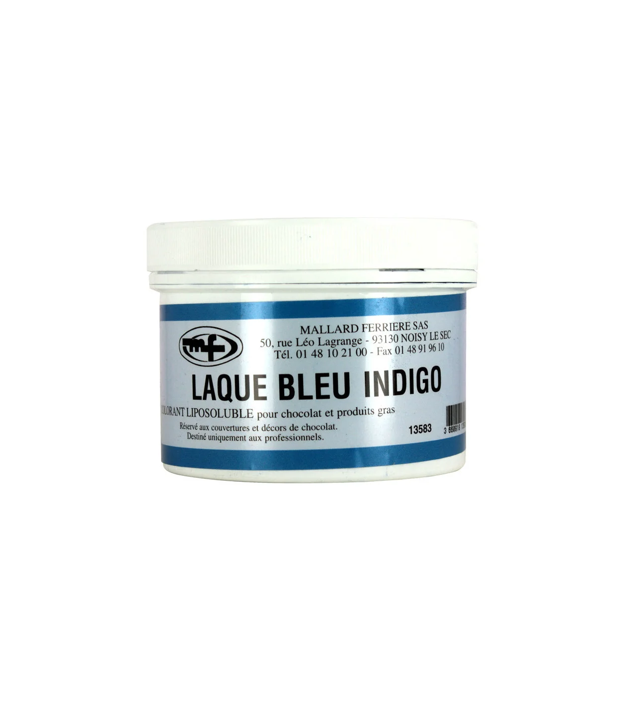Colorant en poudre Bleu Indigo pour la coloration des couvertures de chocolat, décors en chocolat ou pour réaliser des impressions sérigraphiques.