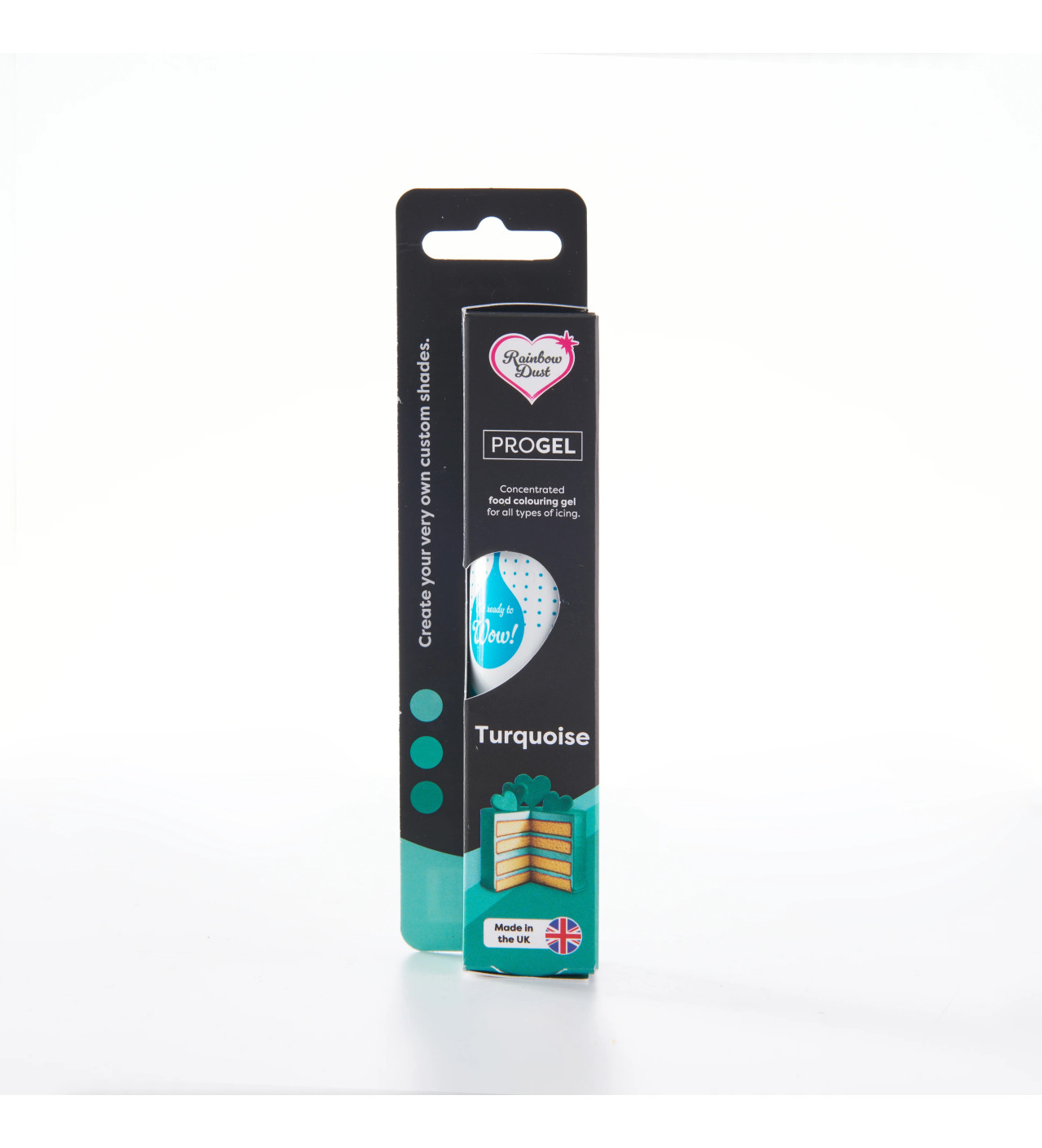 Ce gel colorant créé par la marque anglaise Rainbow Dust vous apportera une teinte unique de turquoise, une nuance située entre le bleu et le vert. Cette couleur intense, qui résiste à la cuisson, plongera votre dessert dans des univers hétéroclites allant de l'exotisme des lagons des îles paradisiaques jusqu'au sublime des pierres précieuses, des paons et des perroquets...