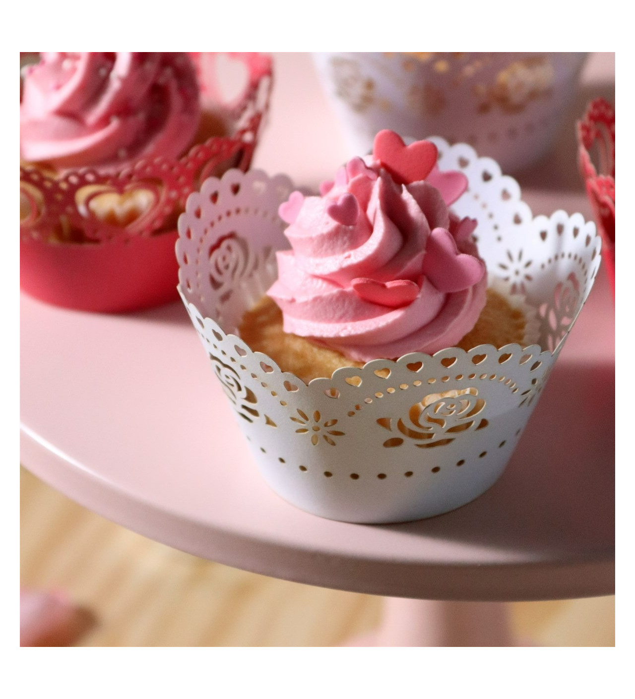 Ce lot comprend 12 wrappers aux 2 designs différents : un délicat motif dentelle cœur dans une teinte rouge intense et un élégant motif dentelle fleur dans un ton blanc élégant qui évoque l’amour et la douceur. Parfaits pour soigner la présentation de vos cupcakes lors d’un dîner romantique, d’un événement festif ou d’une vitrine pâtissière, ces contours pour cupcakes ajoutent une finition chic sans effort.